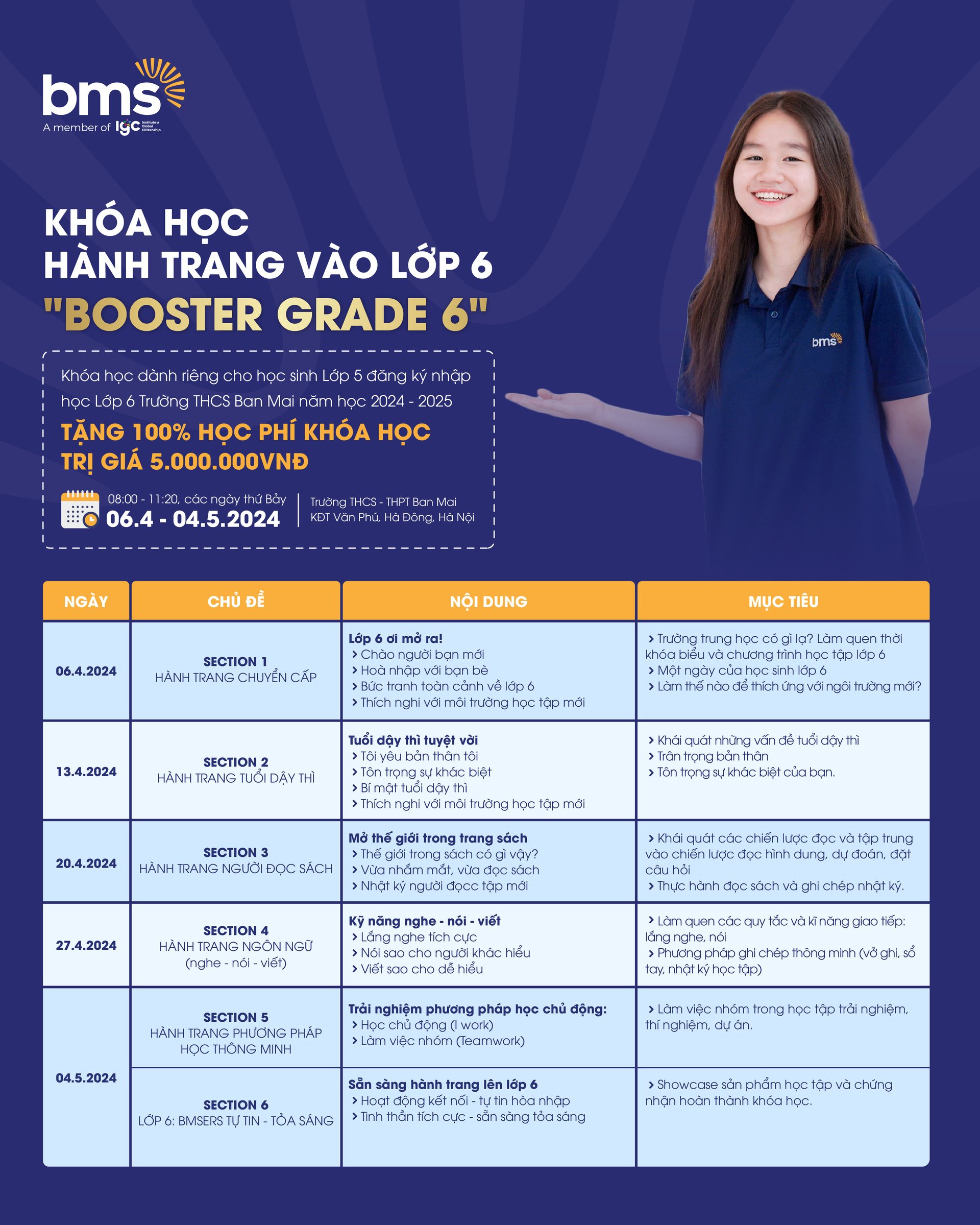 🔹"BOOSTER GRADE 6" - Khóa học Hành trang vào Lớp 6 được Thầy Cô Trường THCS Ban Mai thiết kế dành riêng cho các học sinh Khối 5 với mong muốn đồng hành cùng bố mẹ và con xóa tan lo lắng, tự tin bước vào bậc học mới.