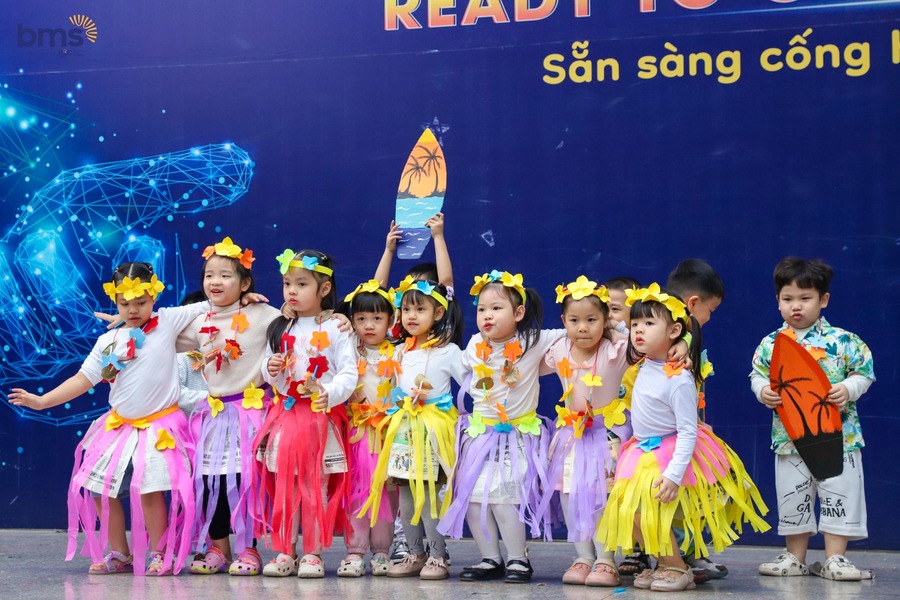 Sân trường trở thành sân khấu văn hoá đầy màu sắc. Tiếng nhạc vang lên cùng những màn biểu diễn của các BMSer nhí như lời chào mở ra một hành trình khám phá thế giới đầy mới mẻ.