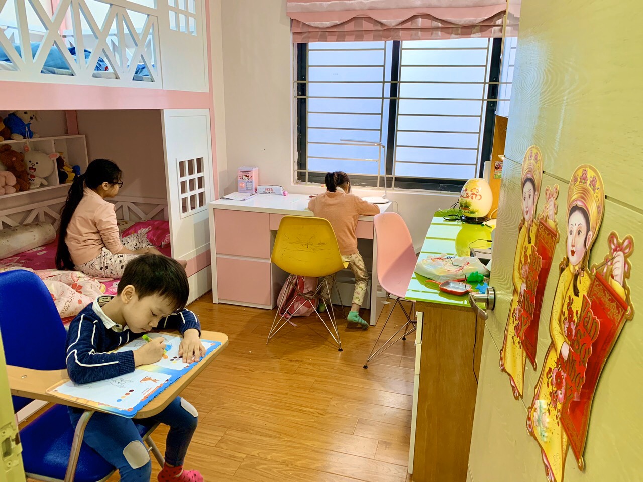 Các bạn nhỏ rất chăm chỉ và tự giác học bài khi ở nhà
