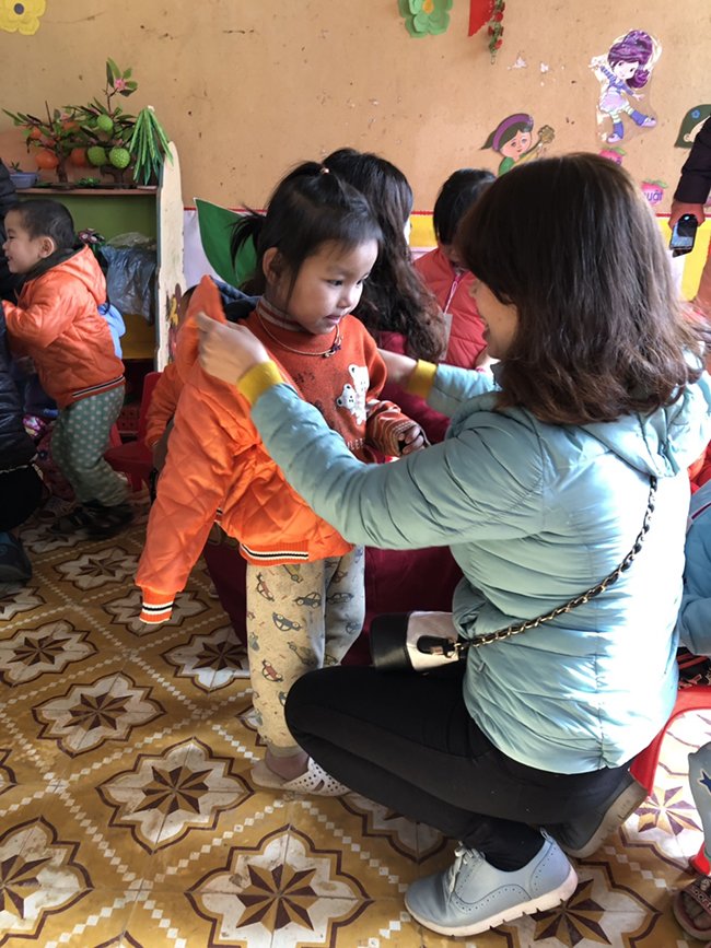 Sáng ngày 18/1, trường Mầm non Ban Mai đã trao tận tay 185 chiếc áo phao mới, 185 bộ khăn mũ len, 555 đôi tất, 58 thùng sữa tươi, bánh kẹo, giầy dép và nhiều vật phẩm cần thiết khác cho các em nhỏ ở trường Mầm non Chế Tạo.