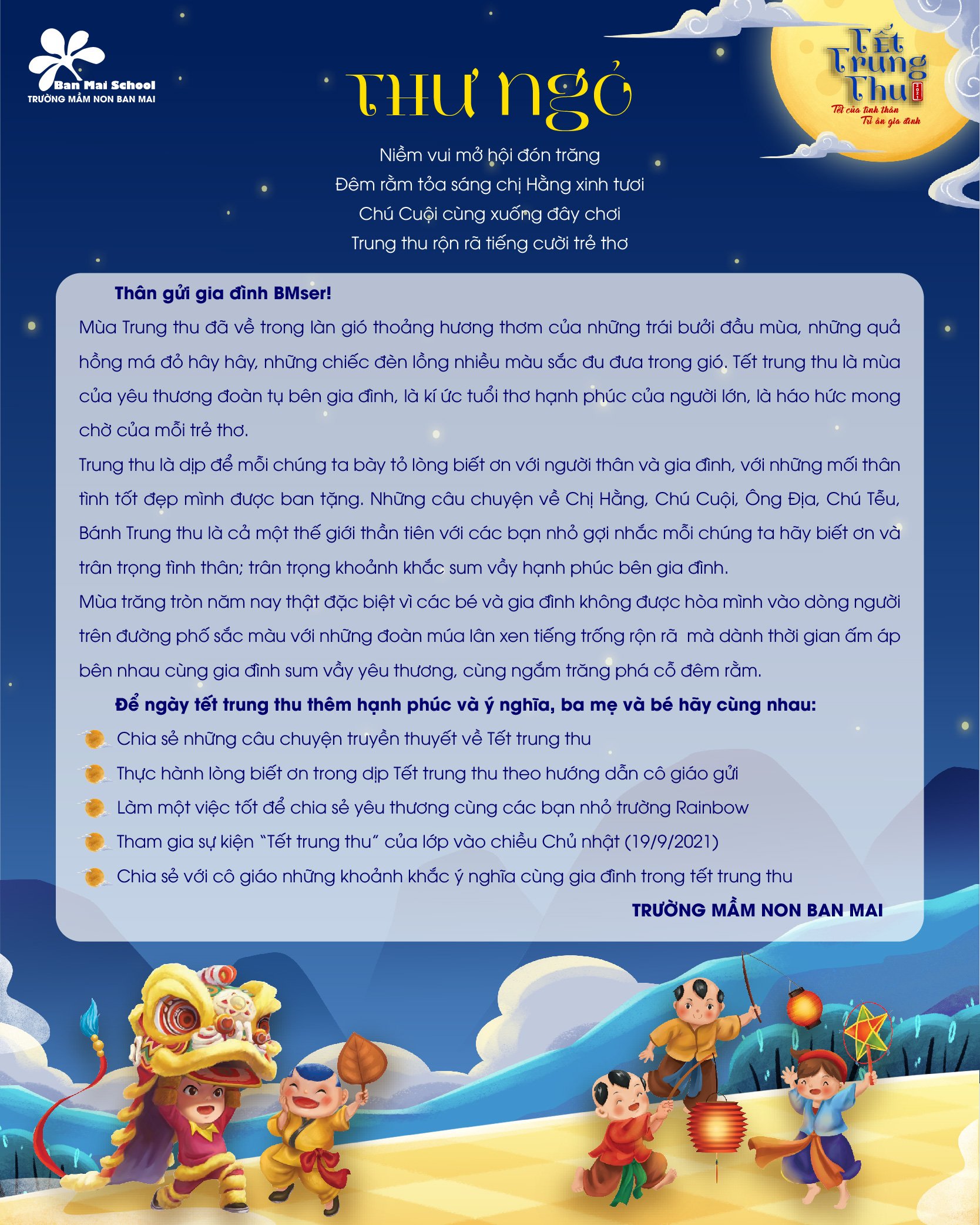 Kính mời Quý phụ huynh cùng các con học sinh thân yêu một bữa tiệc “phá cỗ trông trăng” đặc biệt tại https://old.banmaischool.edu.vn/phien-ban-website-trung-thu-2021-dac-biet-danh-tang-bmsers/