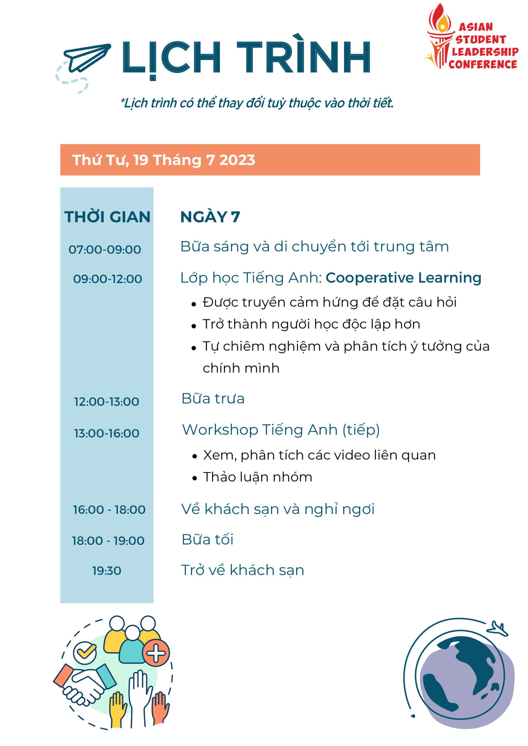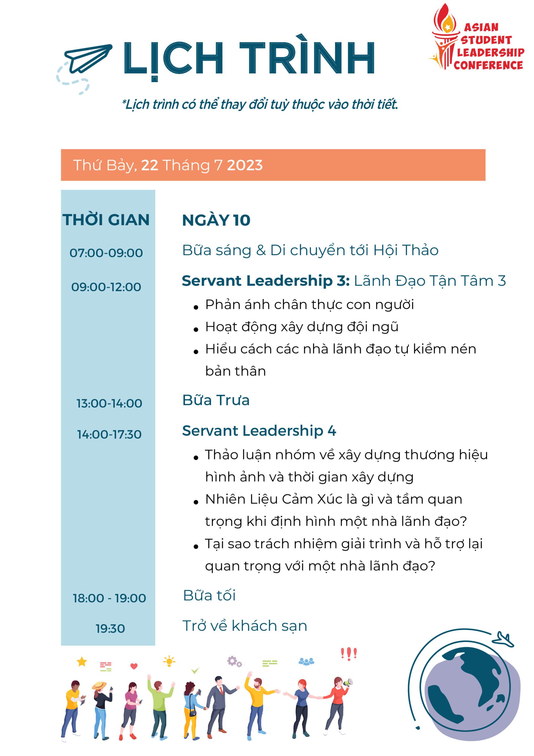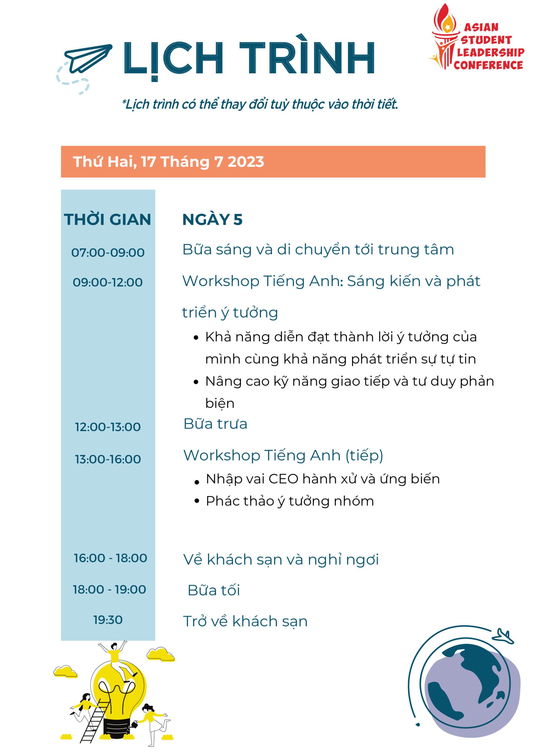 LỊCH TRÌNH TRẠI HÈ LÃNH ĐẠO TRẺ CHÂU Á ASLC