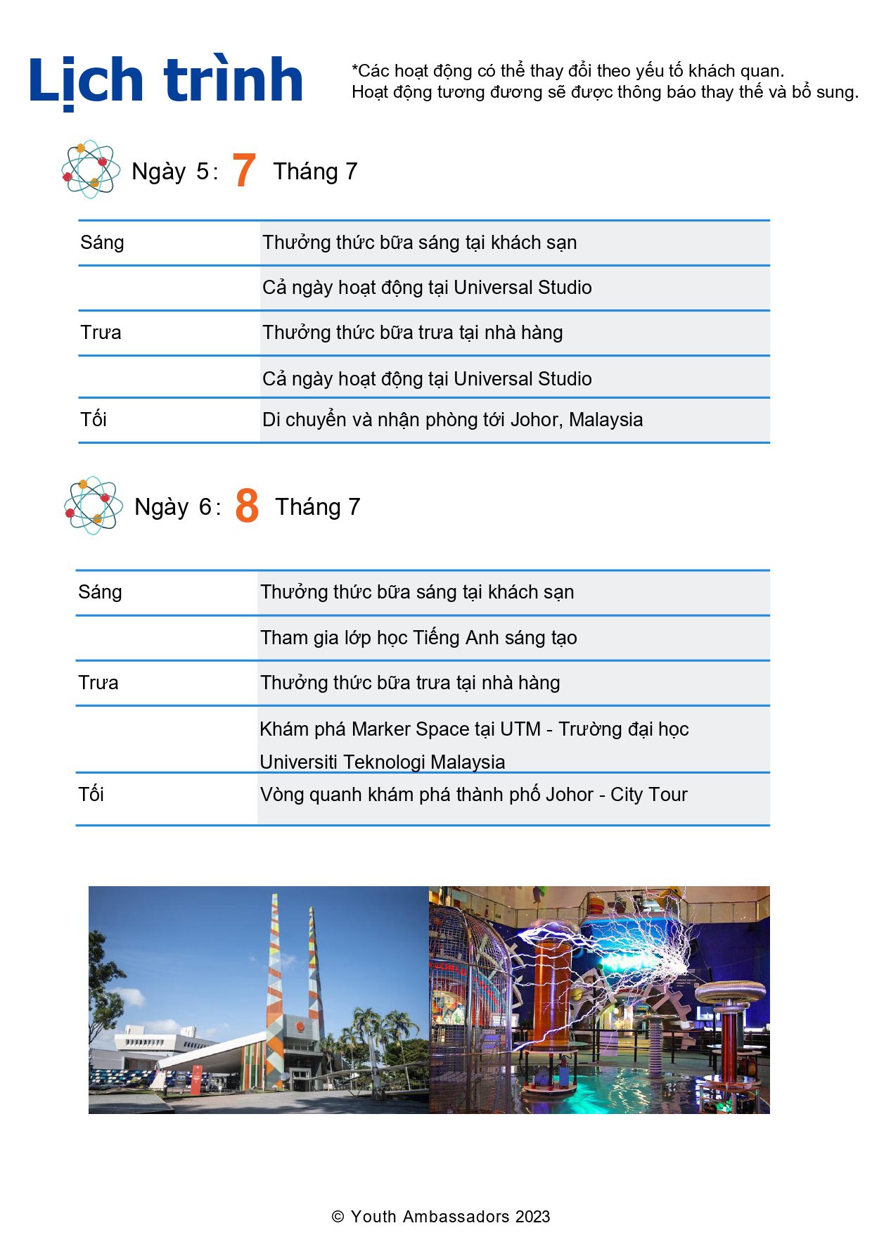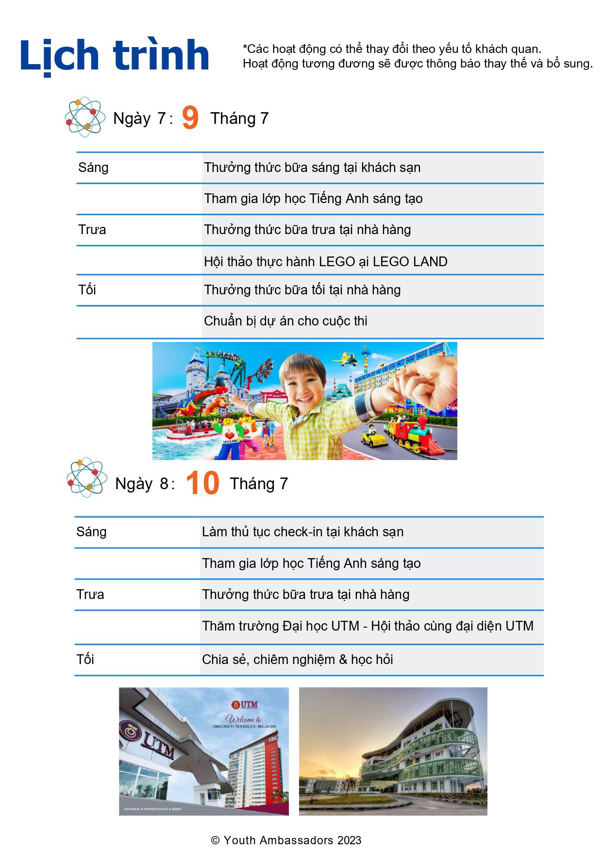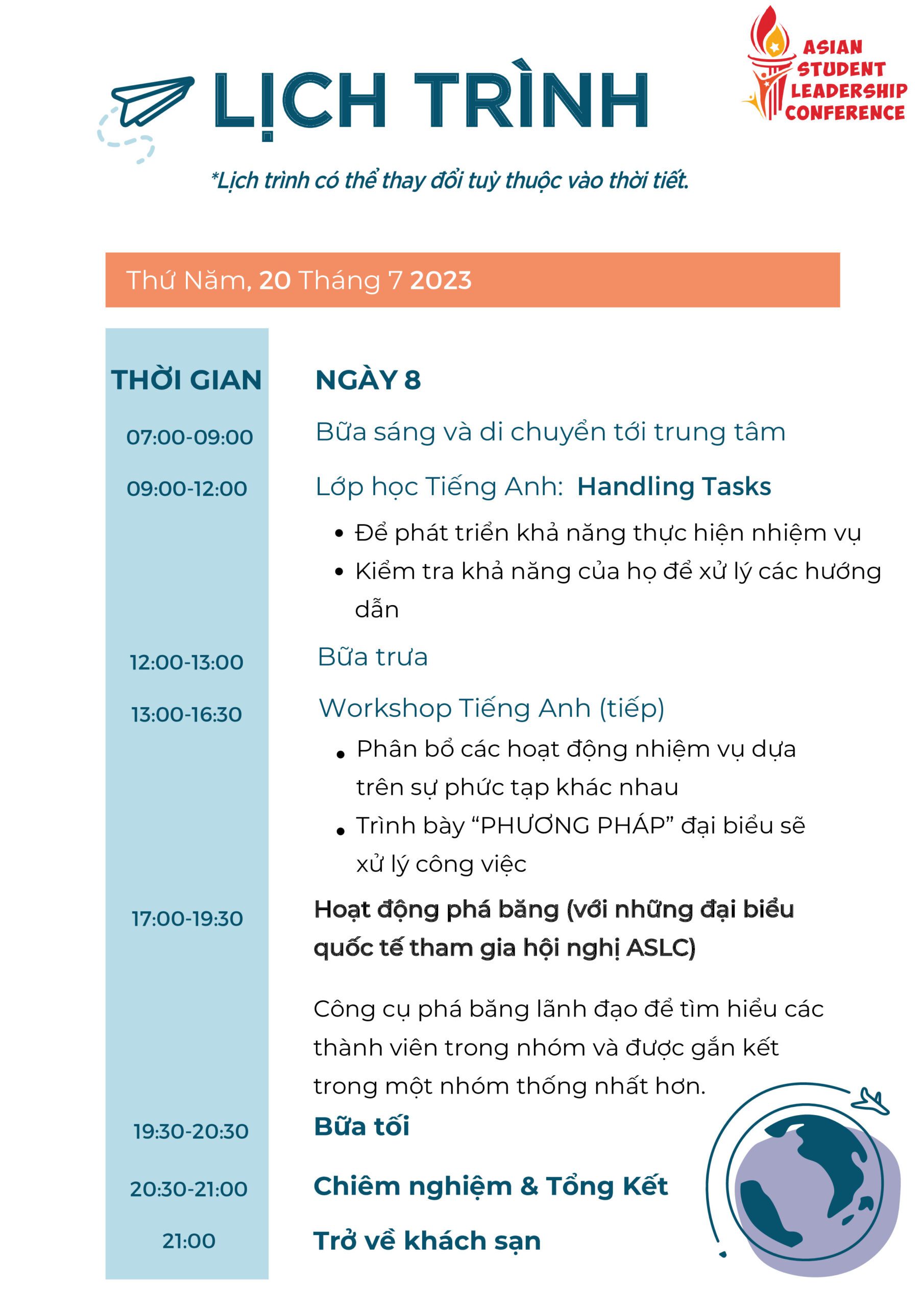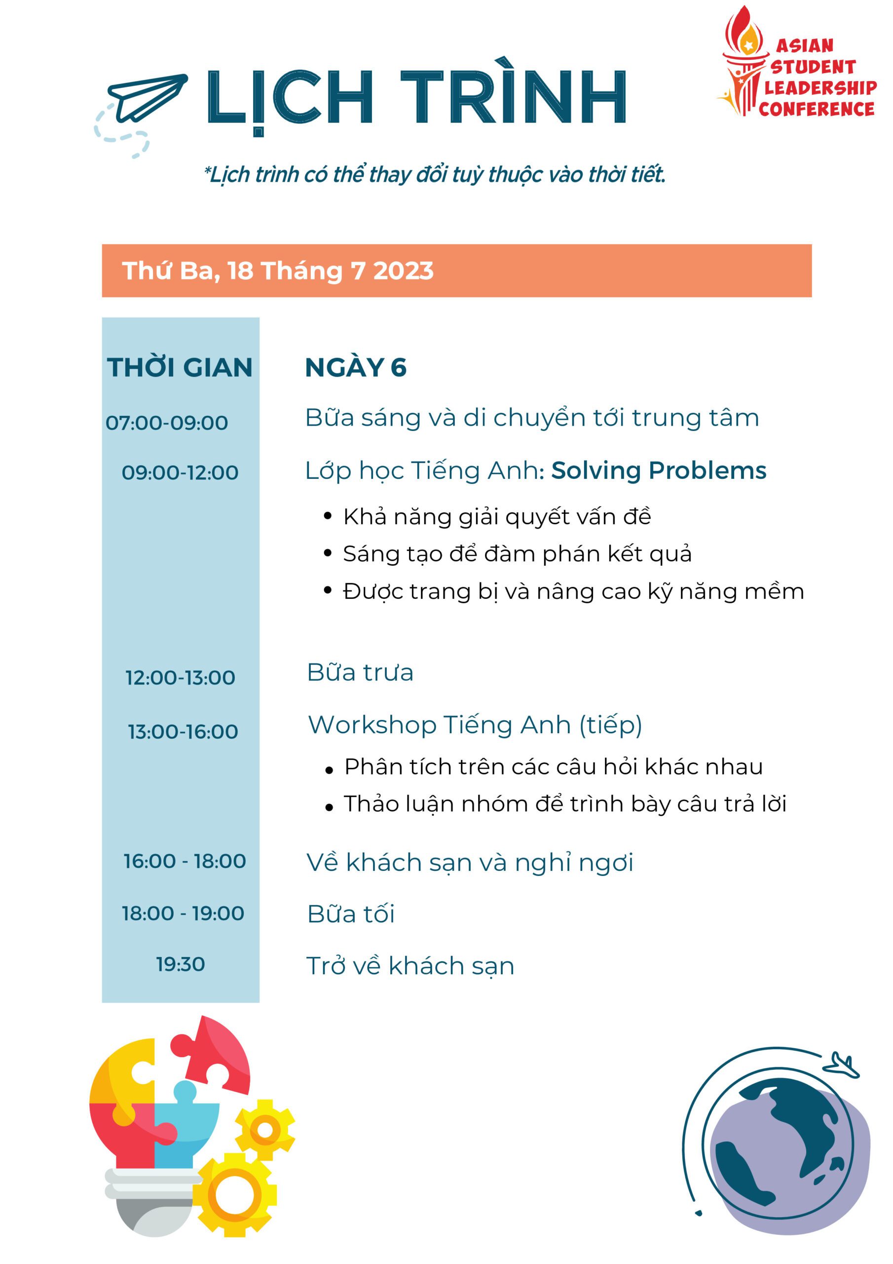 LỊCH TRÌNH TRẠI HÈ LÃNH ĐẠO TRẺ CHÂU Á ASLC