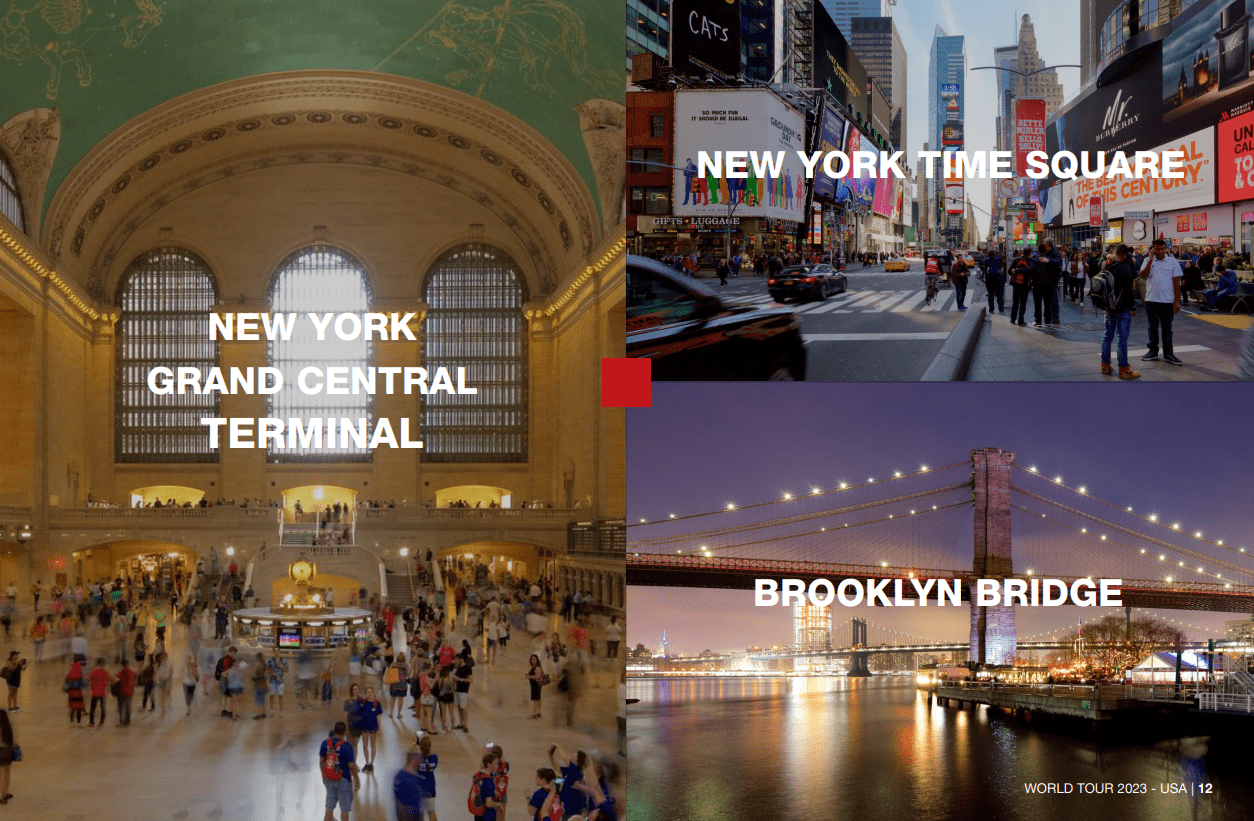 thần tự do, Đài quan sát One World Observatory, Đài tưởng niệm sự kiện 9/11, Quảng trường Thời Đại, Bảo tàng lịch sử USS Constitution Museum and Bunker Hill, chợ Quincy…sẽ mang lại cho các em sự hứng khởi và cơ hội hoà nhập tìm hiểu văn hoá, lịch sử, môi trường cũng như nhiều trải nghiệm đắt giá về hai thành phố hàng đầu nước Mỹ