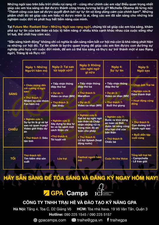 7. TRẠI HÈ KĨ NĂNG VÀ TRẢI NGHIỆM: GPA CAMPS – FUTURE ME “RADIANT STARS: NHỮNG NGÔI SAO RẠNG NGỜI” – HÒA BÌNH