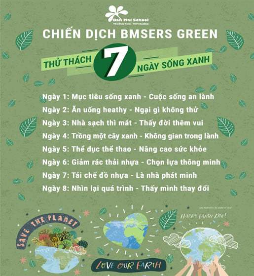 – 24/2/2022: Tổng kết hoạt động.( HS quay Video, viết chia sẻ những cảm xúc, sự thay đổi của bản thân trong 7 ngày sống xanh.)