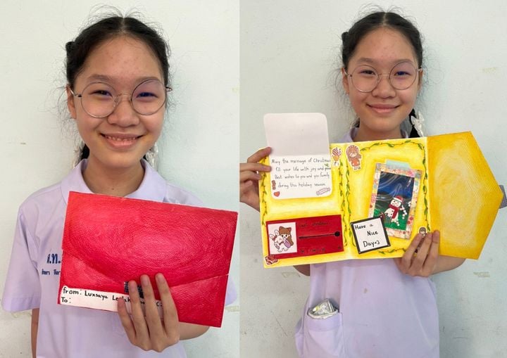 Dưới đôi bàn tay khéo léo, các học sinh đã tự tay cắt dán, vẽ những tấm bưu thiếp Giáng sinh ấm áp đầy sắc màu với thông điệp yêu thương trao gửi tới bạn bè cùng độ tuổi ở các nước: Anh, Hoa Kỳ, Đài Loan, Thái Lan thông qua dự án TRAO ĐỔI THIỆP NOEL
