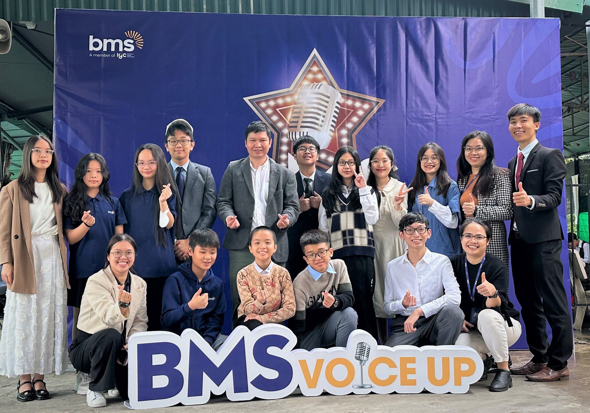 Ban Giám khảo và các Thầy Cô giáo vô cùng ấn tượng với sự chuẩn bị công phu, sáng tạo trong cách tạo hình sân khấu, cách BMSers xây dựng kịch bản, xử lý tình huống nhân vật và khả năng sử dụng tiếng Anh lưu loát, linh hoạt cũng như phong thái tự tin của học sinh THCS Ban Mai.