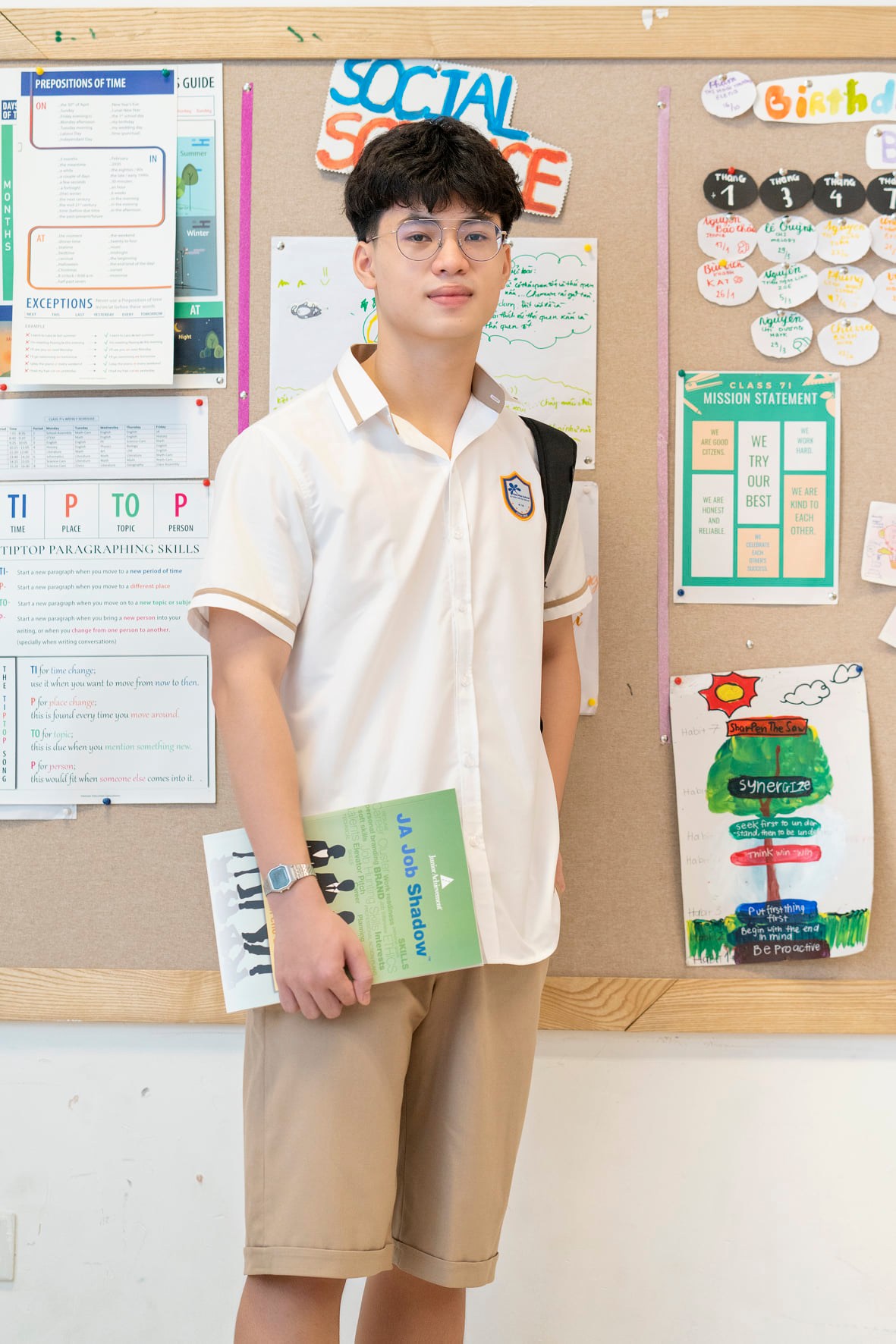 Các bạn nam sinh có thể lựa chọn các loại trang phục: áo sơ mi trắng, áo polo; quần dài, quần sooc. Các bạn nữ sinh phối thêm chiếc váy xếp li với những đường gấp nếp lớn, bên trong chân váy được thiết kế kèm quần bảo hộ đem đến sự tự tin cho bạn nữ khi học tập hay hoạt động.