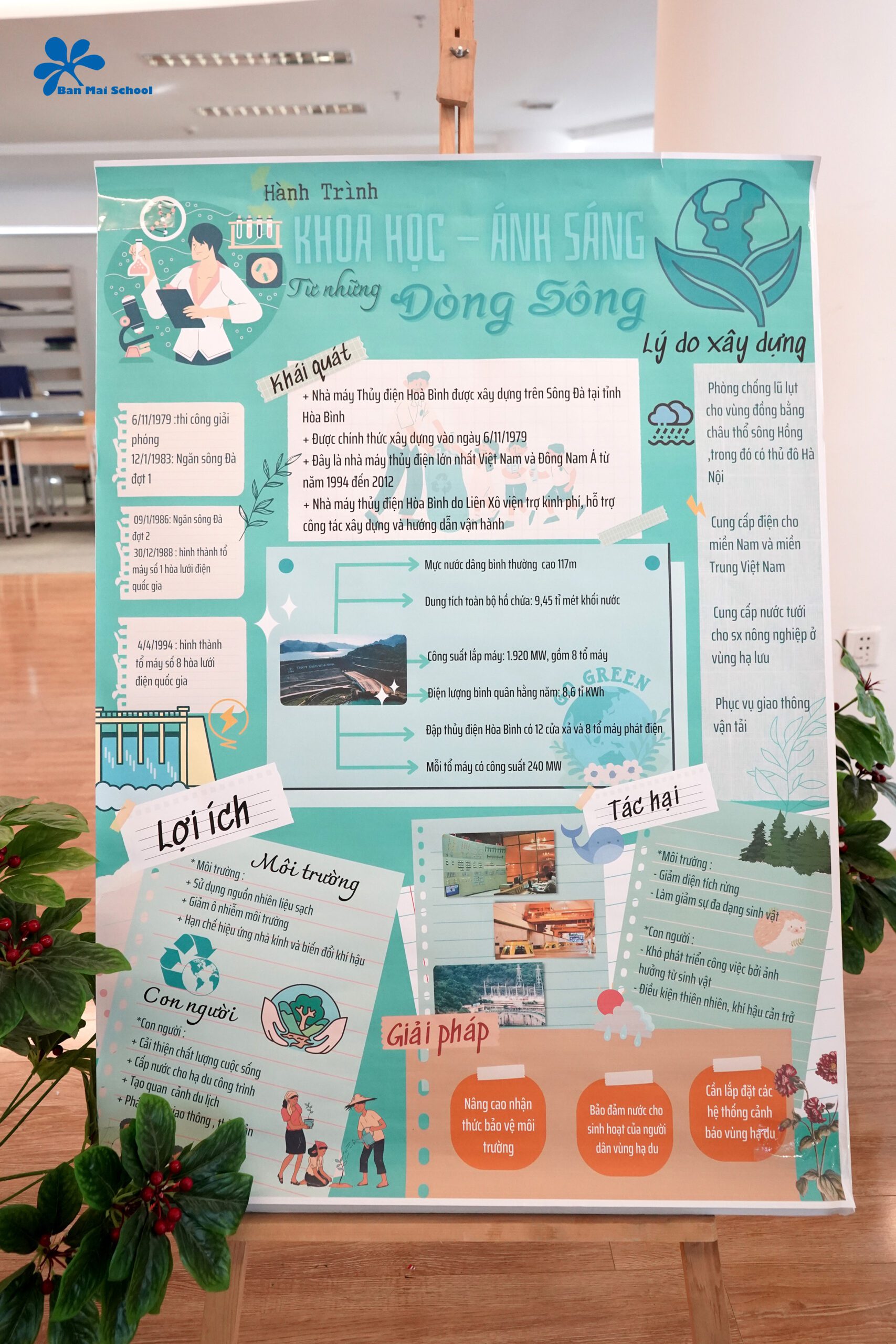 Tại trường THPT Ban Mai, chương trình học các môn Khoa học tự nhiên năm học 2022-2023 được thiết kế với nhiều chủ đề học tập tổ chức thông qua hình thức học trải nghiệm thực tế trong và ngoài nhà trường. Nổi bật trong tháng 10/2022 đó là Dự án học tập trải nghiệm tích hợp liên môn với chủ đề: “HÀNH TRÌNH KHOA HỌC – ÁNH SÁNG TỪ NHỮNG DÒNG SÔNG dành cho học sinh khối 11 tại Nhà máy thủy điện Hòa Bình, Tỉnh Hòa Bình.