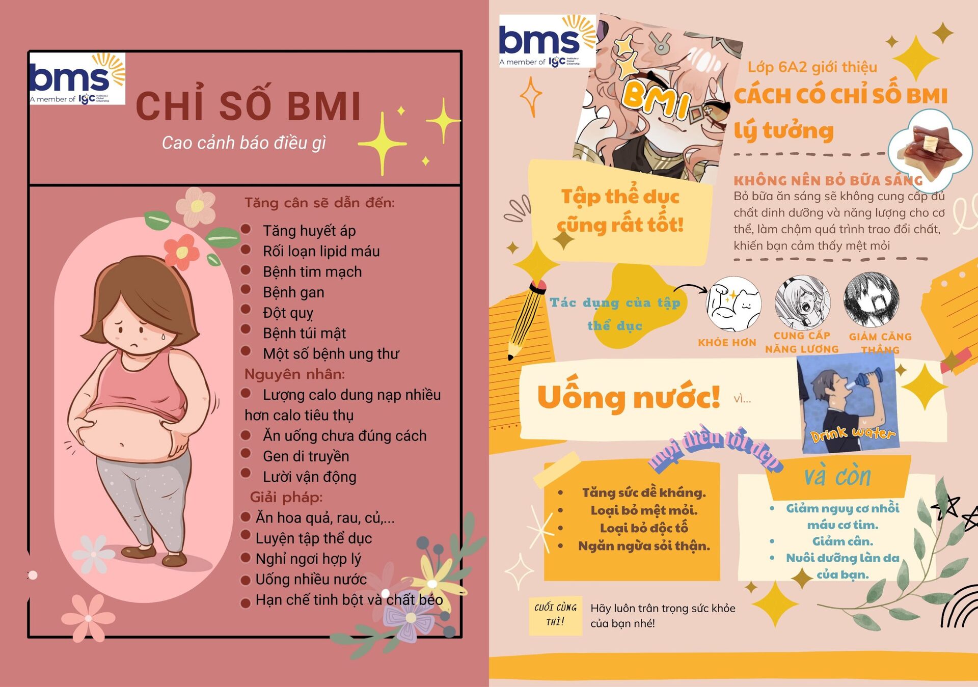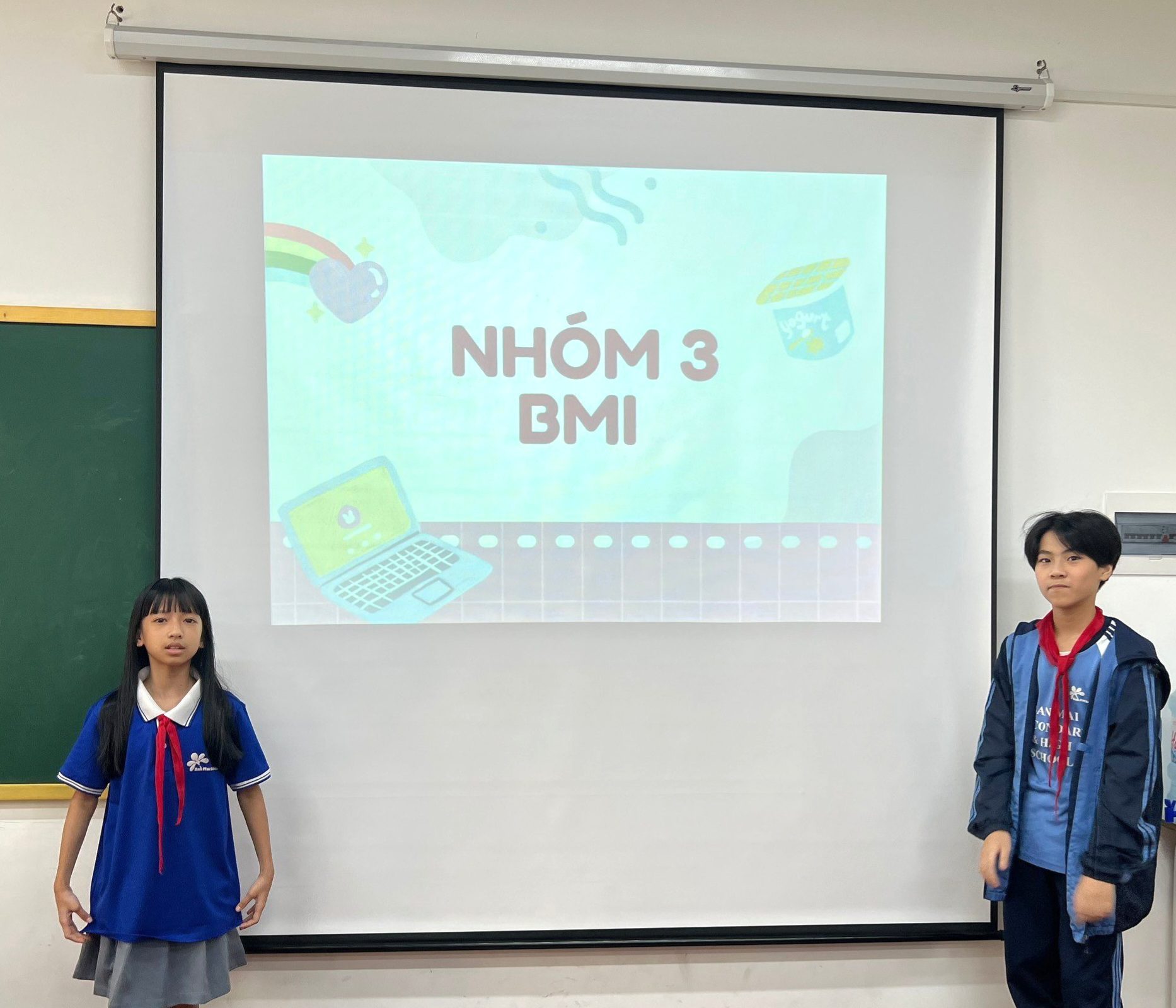 Học sinh Cao Đức Phát – lớp 6i1 chia sẻ: “Con thấy dự án đo chỉ số khối cơ thể BMI vô cùng thú vị và giúp chúng con hào hứng hơn khi tiếp cận với môn Toán ở bậc Trung học cơ sở. Chúng con được sáng tạo dưới nhiều hình thức thể hiện khác nhau, tự phát huy được thế mạnh của bản thân và đội nhóm. Bản thân con cũng tự ý thức được việc ăn uống, rèn luyện thể dục để giữ sức khỏe tốt và chỉ số BMI cân đối”