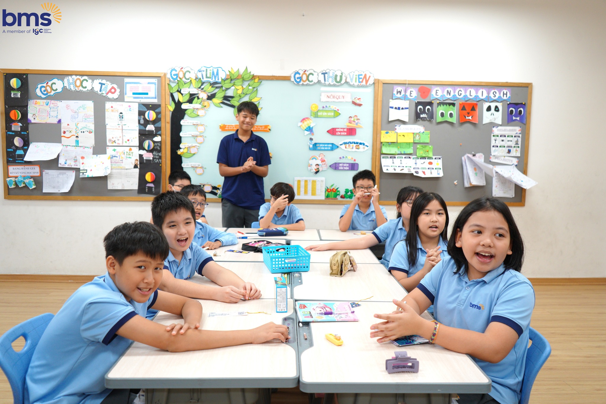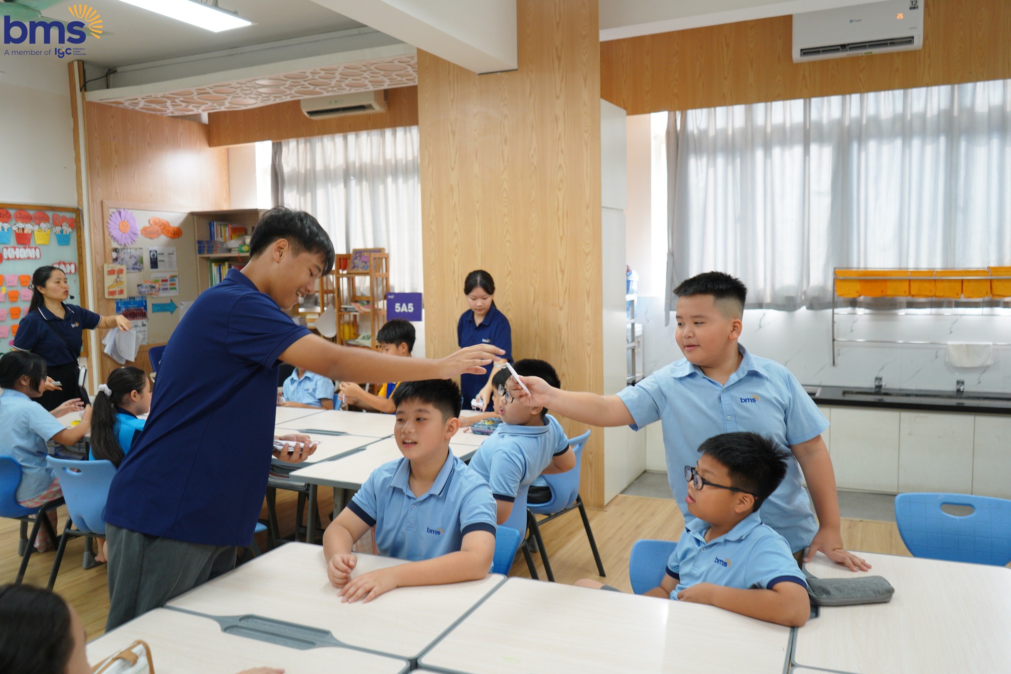 Ngoài sự hướng dẫn của Thầy cô, các anh chị trợ giảng từ Trường THCS Ban Mai cũng đóng vai trò quan trọng trong việc giúp các bạn học sinh lớp 5 làm quen với phương pháp học mới. Các anh chị hướng dẫn, đồng hành, chia sẻ những kinh nghiệm học tập giúp các em càng thêm tự tin và mạnh dạn hơn trong việc học hỏi.