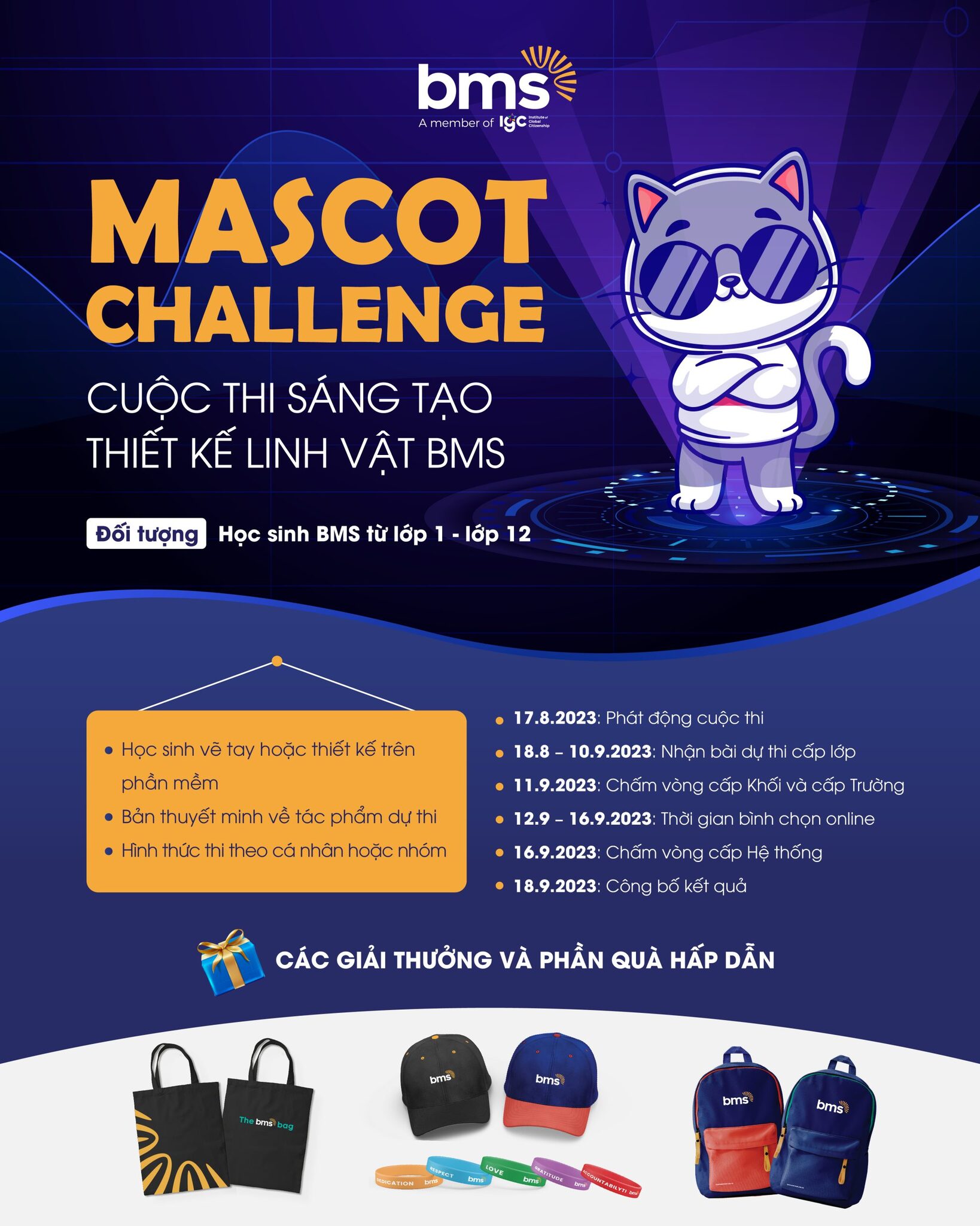 • Toàn bộ các ý tưởng thiết kế dự thi sẽ được lưu trữ và được sử dụng vào mục đích Marketing, truyền thông, tuyển sinh, vận hành, v.v. của BMS.