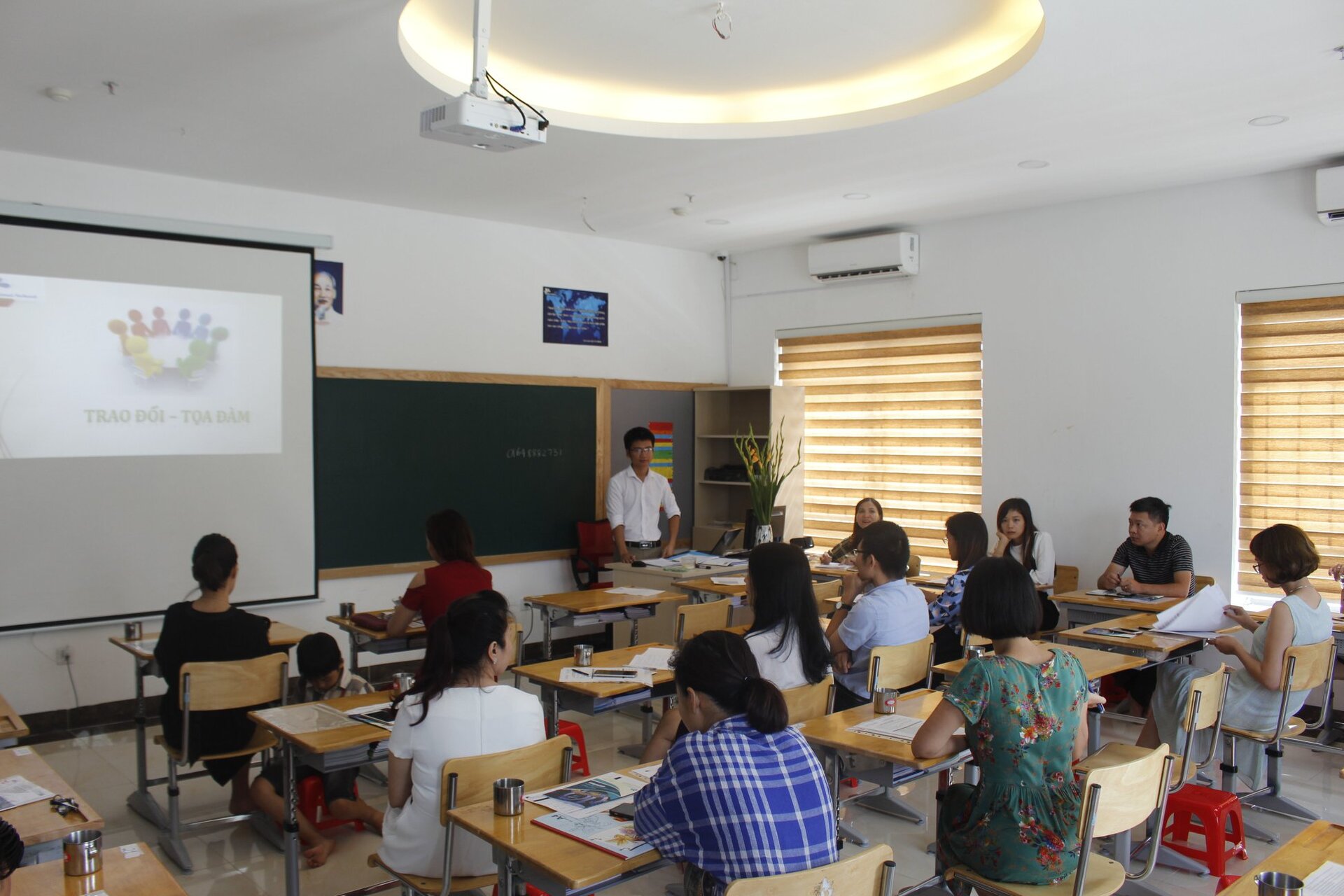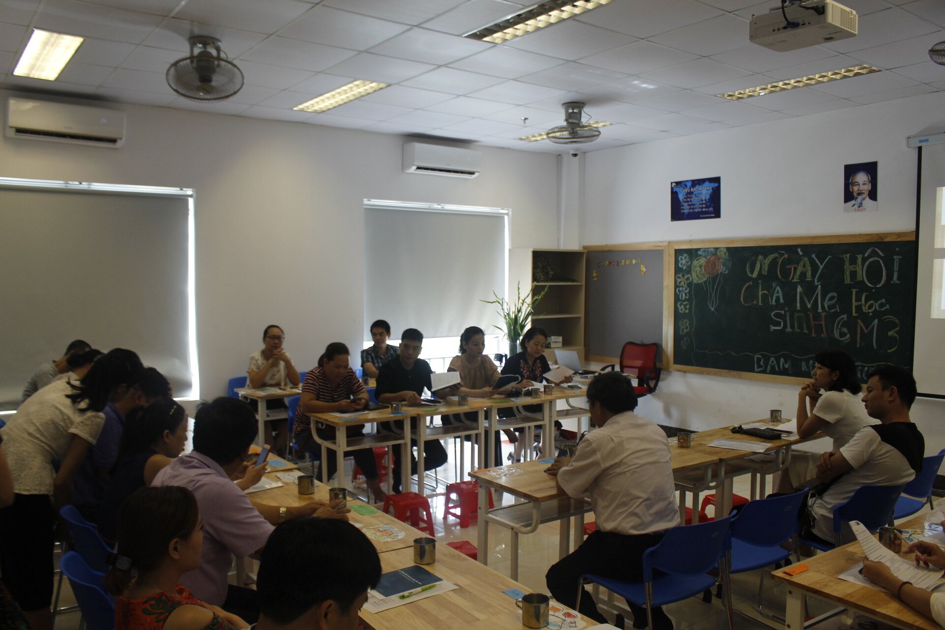 Quý Cha mẹ học sinh khối 10 và 11 đã tham gia buổi Hội thảo chung tại Thư viện Trường với chủ đề: Chương trình THPT và định hướng giáo dục tại THPT Ban Mai do Thầy Nguyễn Khánh Chung – Hiệu trưởng Nhà trường chia sẻ. Trong Hội thảo này, Cha Mẹ học sinh đã được cung cấp thêm nhiều thông tin về kỳ thi THPT Quốc gia như: các môn thi bắt buộc, các môn thi tự chọn, hình thức thi… để Cha mẹ có thêm góc nhìn tổng quan về lộ trình học của con trong suốt thời gian con học tập và ôn luyện tại trường.