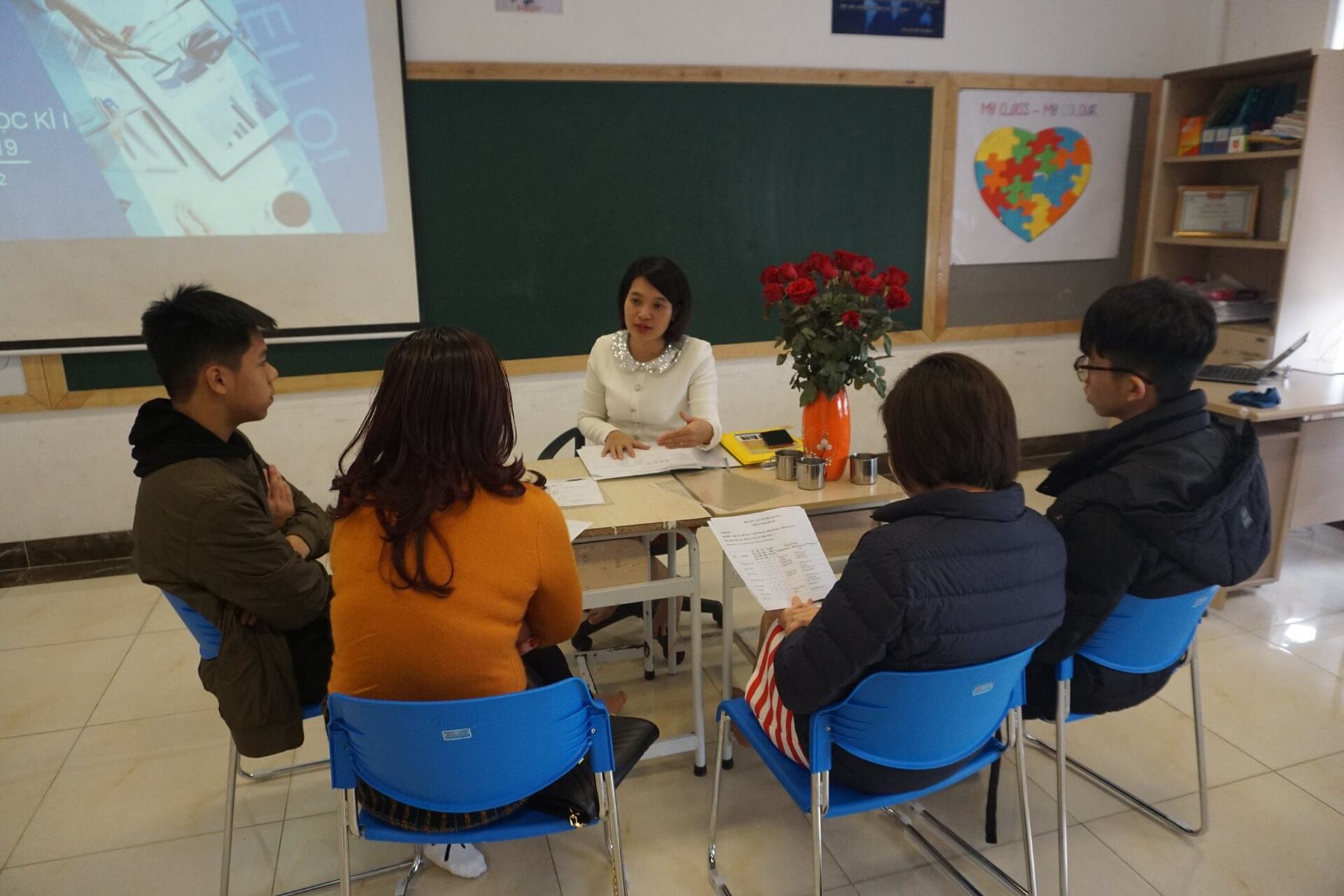Thầy Nguyễn Khánh Chung – Hiệu trưởng Nhà trường trao đổi với Hội đồng CMHS cấp Trường