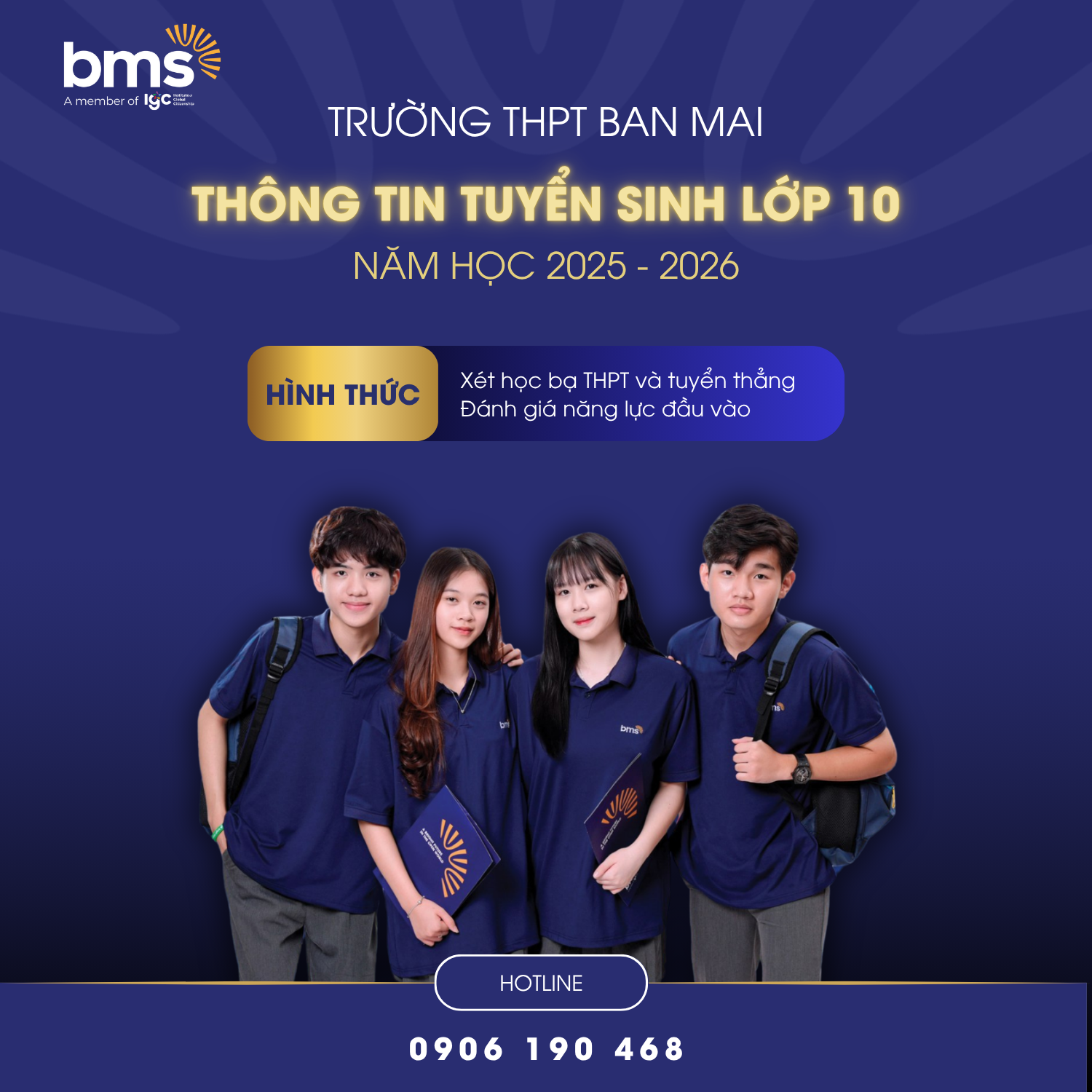 Đối với tuyển sinh lớp 10, BMS áp dụng 3 hình thức xét tuyển chính cho năm học 2025 - 2026:
