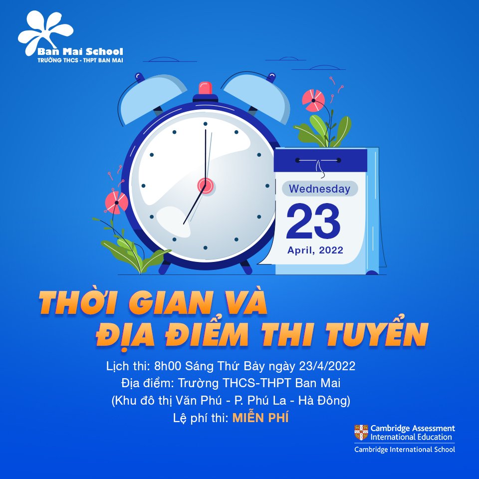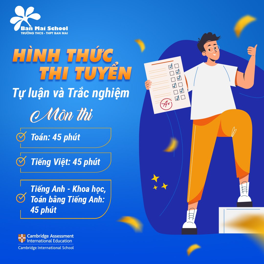Với mục tiêu nâng cao chất lượng đào tạo và ươm mầm; bồi dưỡng cho sự phát triển tài năng của học sinh, Trường THCS-THPT Ban Mai tổ chức kỳ thi “HỌC BỔNG VÀ XẾP LỚP T; i” cho học sinh tham gia tuyển sinh vào lớp 6 năm học 2022-2023.