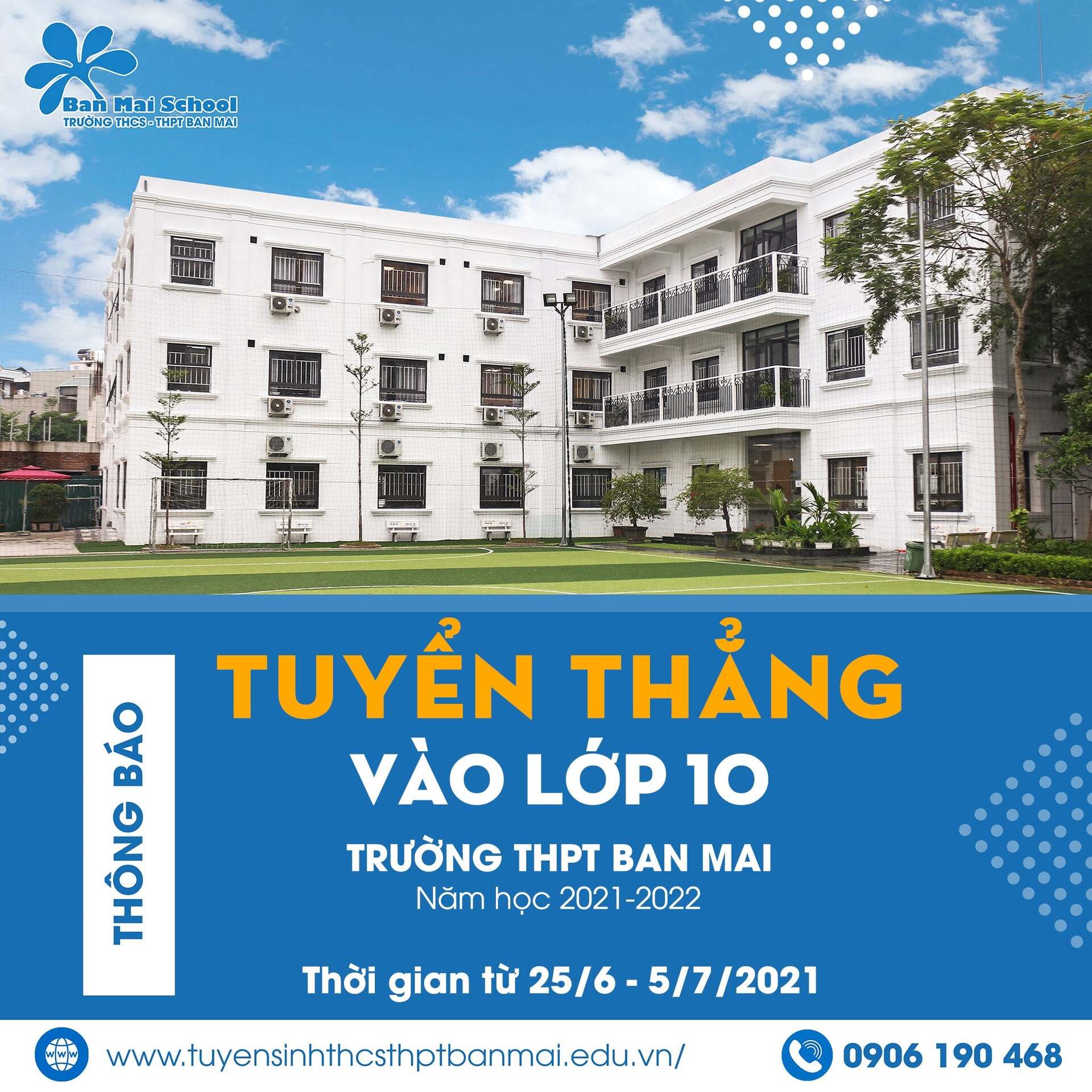 THÔNG BÁO: TUYỂN THẲNG VÀO LỚP 10 TRƯỜNG THPT BAN MAI NĂM HỌC 2021-2022