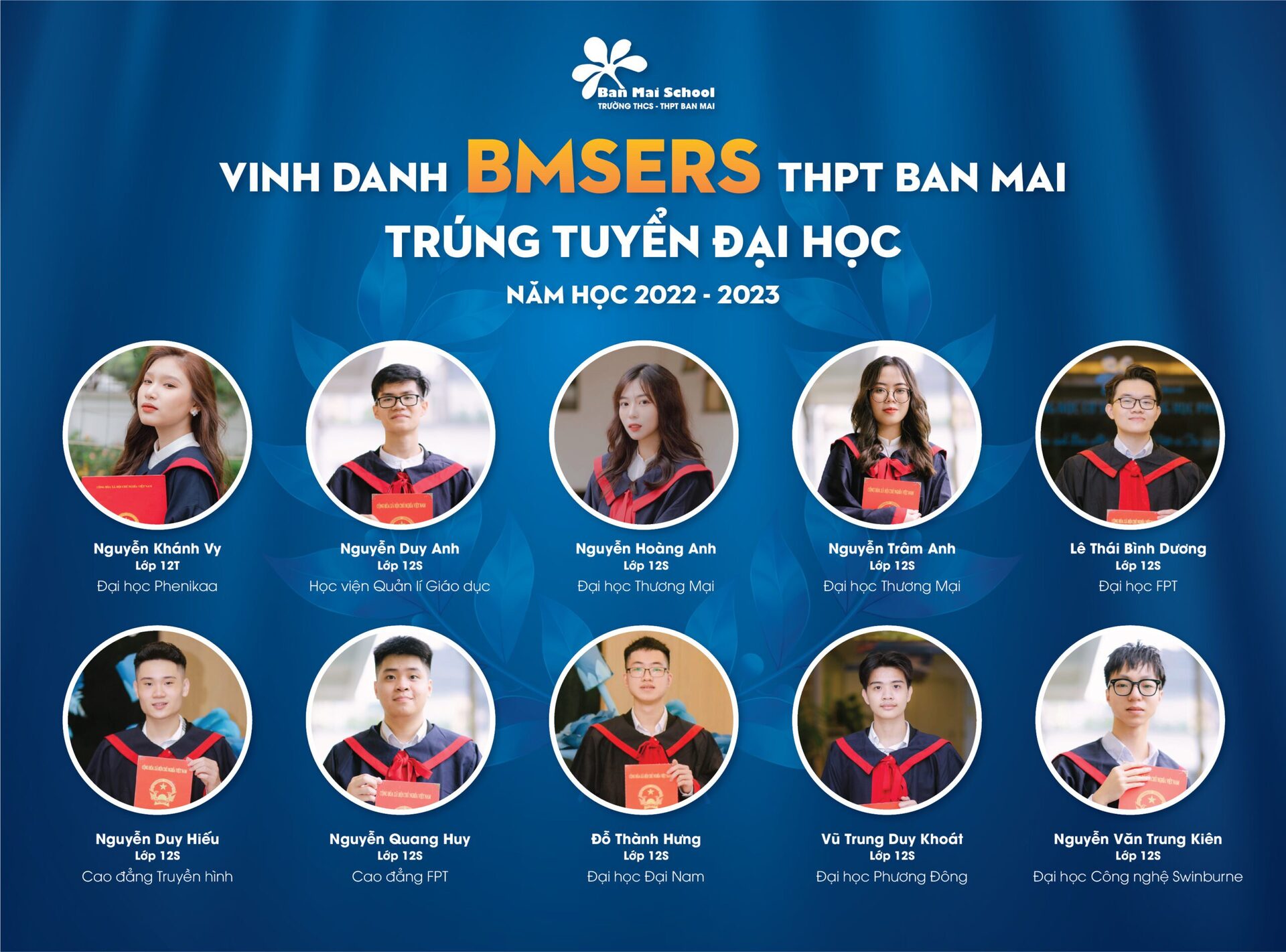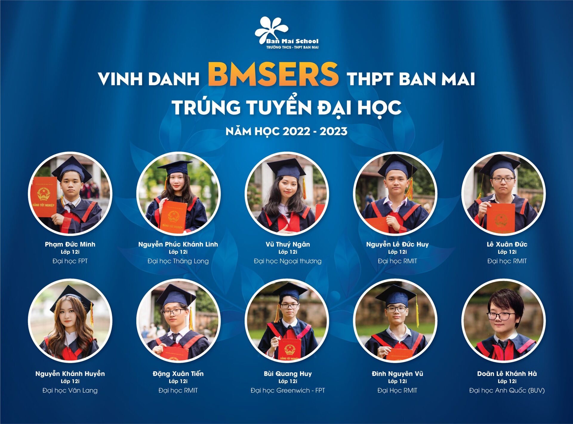 Thành tích ấn tượng mà các BMSers đạt được trong kỳ thi vào Đại học là kết quả của sự nỗ lực không ngừng nghỉ đèn sách, là sự quyết tâm đồng thời là cách thể hiện khả năng, tri thức bản thân cùng với đó là sự đồng hành của Cha Mẹ, Thầy Cô và Nhà trường.