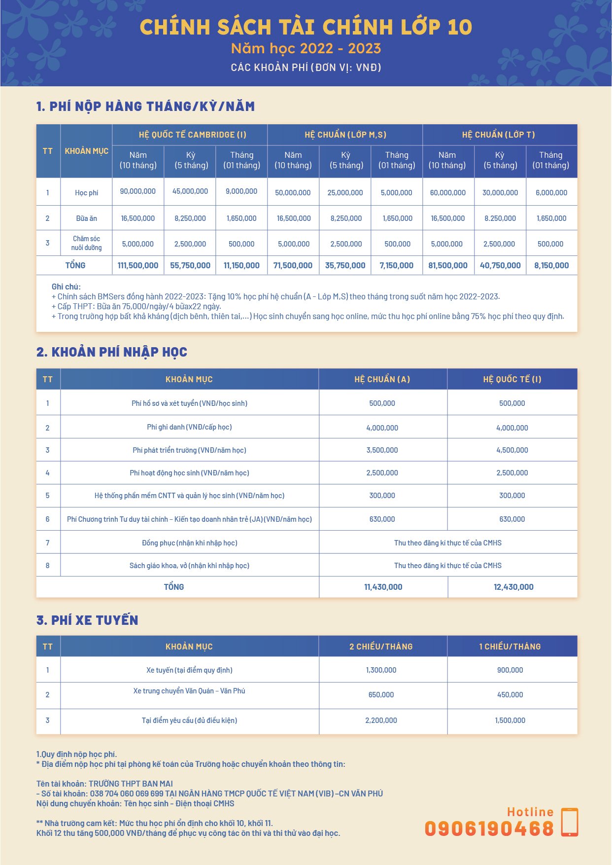 Quý CMHS vui lòng tham khảo chính sách học phí năm học 2022-2023