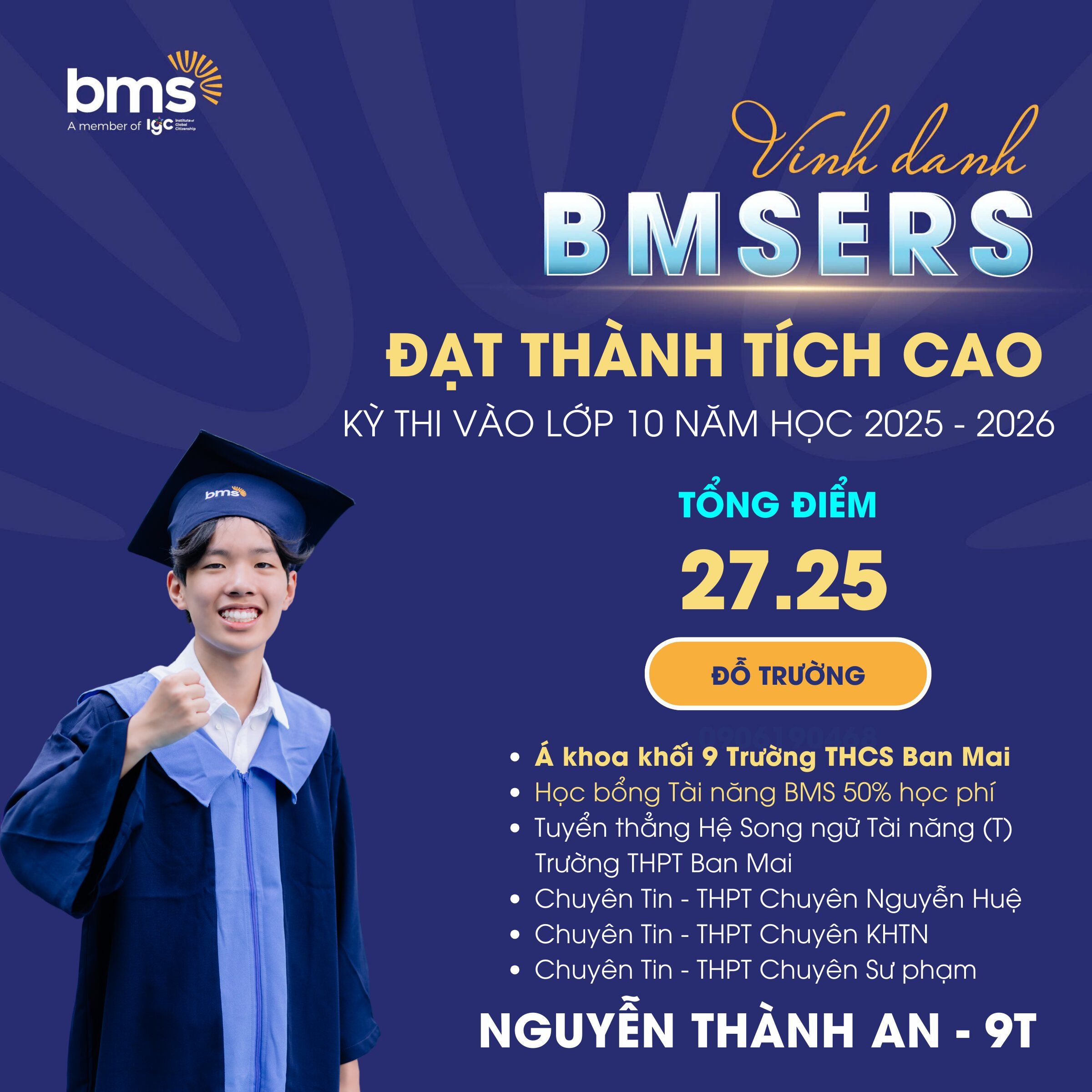 Trong kỳ thi năm nay, nhiều học sinh Ban Mai đã xuất sắc giành học bổng tài năng và ghi danh vào các hệ đào tạo chất lượng cao tại Trường THPT Ban Mai: Hệ Song bằng Quốc tế Cambridge (i); Hệ Song ngữ Tài năng (T); Hệ Song ngữ Nâng cao (A)