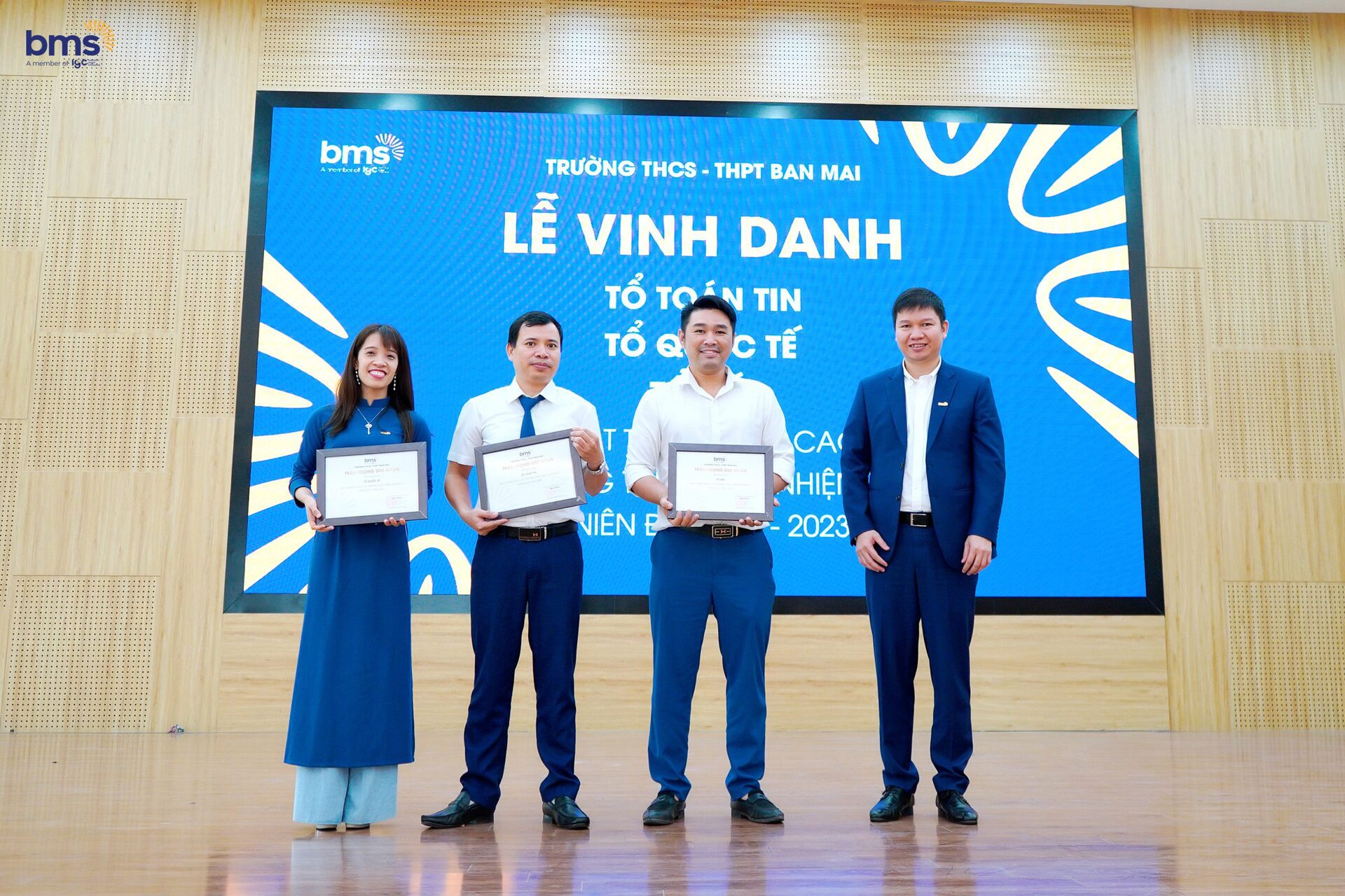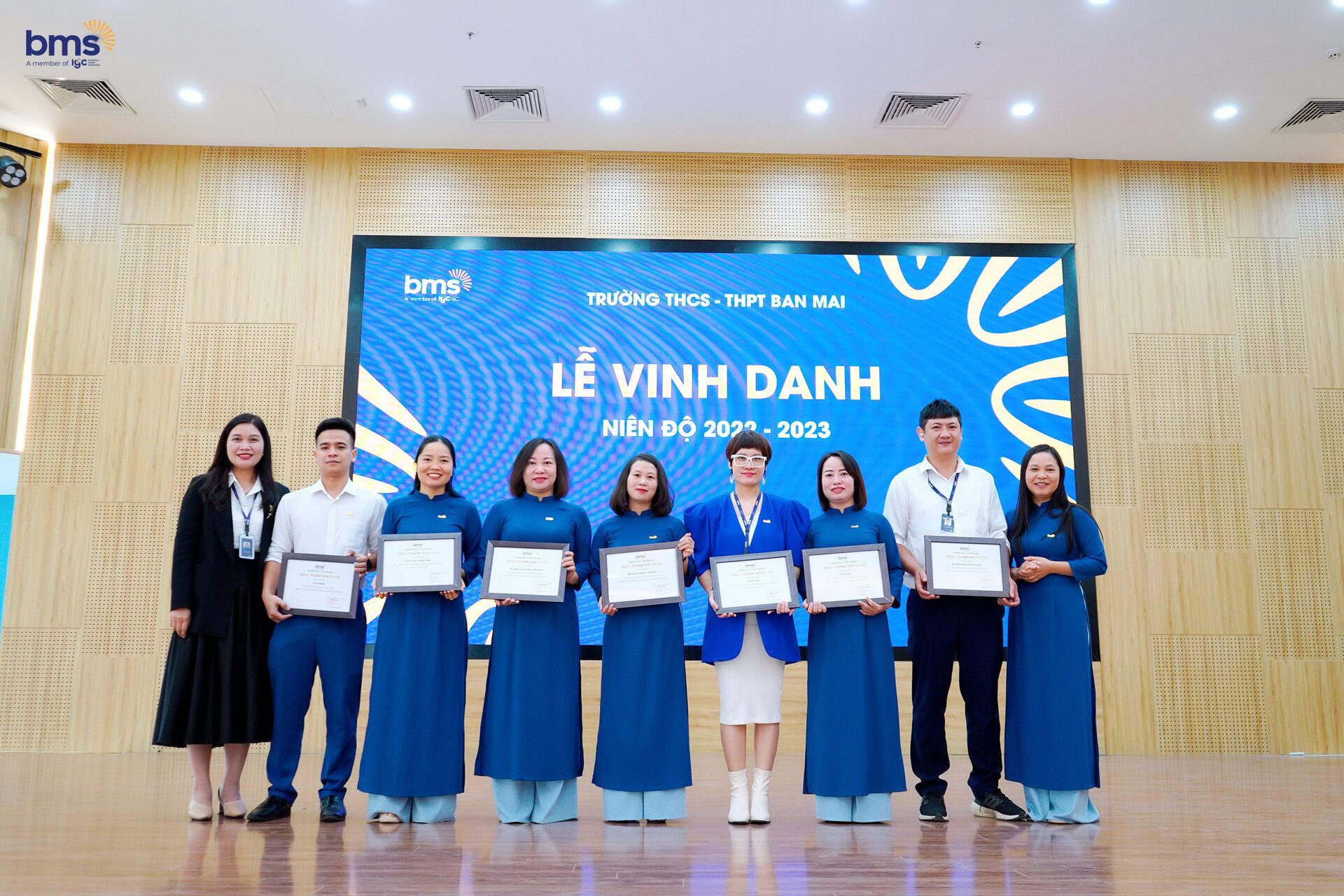 Ban lãnh đạo Nhà trường đã vinh danh và ghi nhận những đóng góp của từng cá nhân và biểu dương 12 tập thể có thành tích xuất sắc. Với tinh thần “Tôn trọng tạo gắn kết –  Hợp lực để thành công”, Trường THCS – THPT Ban Mai sẽ tiếp tục phấn đấu, giữ vững và phát huy những tiềm lực để gặt hái nhiều thành công hơn nữa trong niên độ  2023 – 2024.