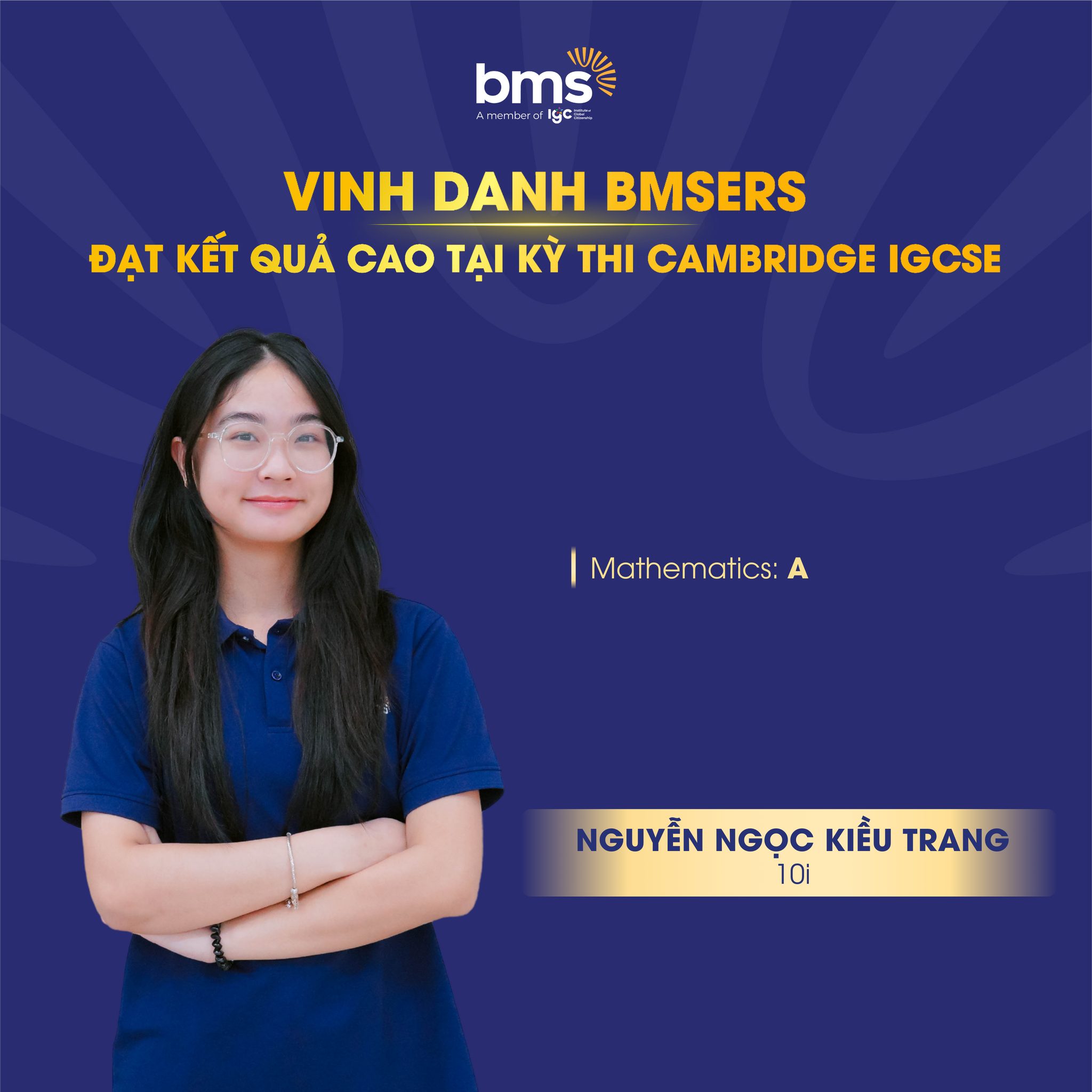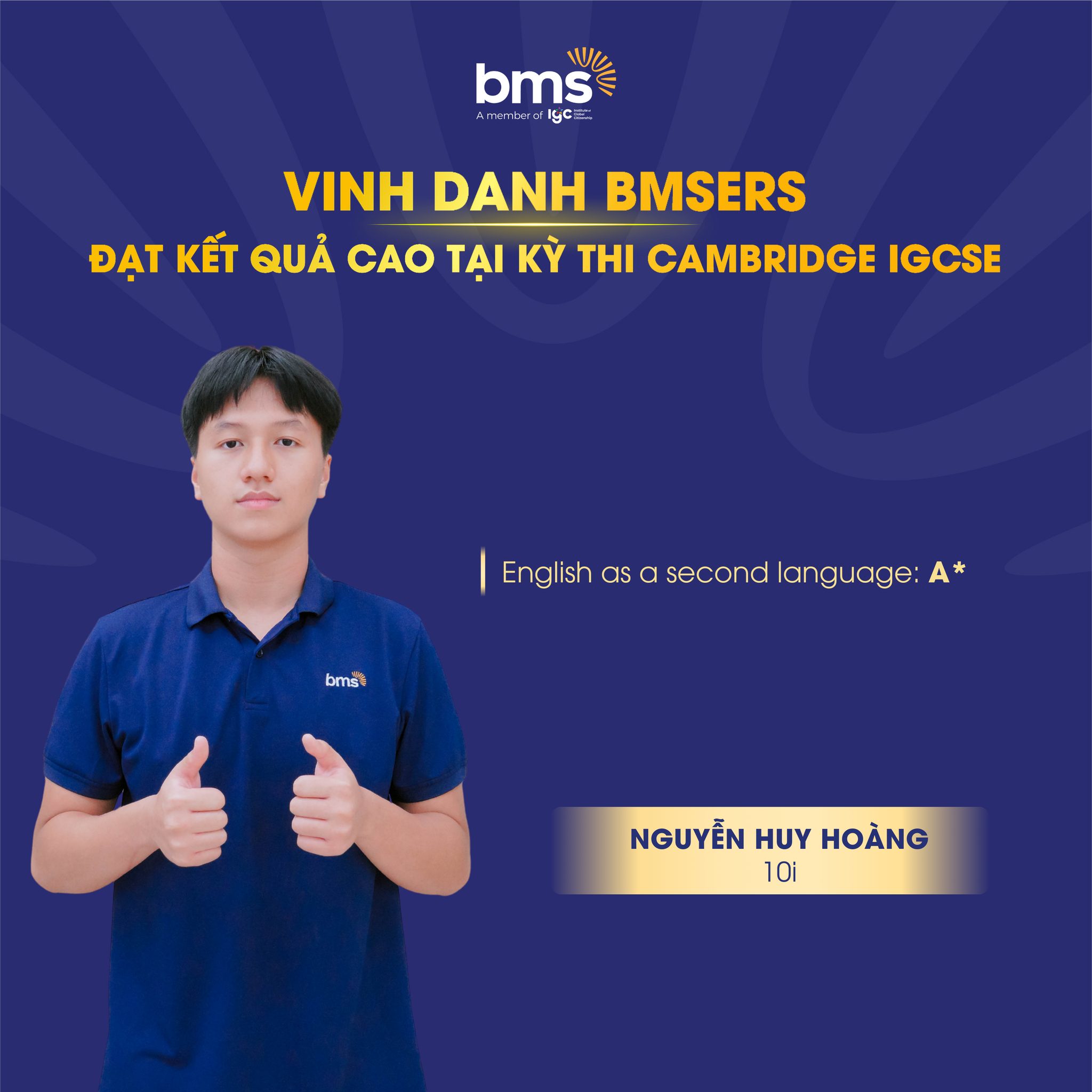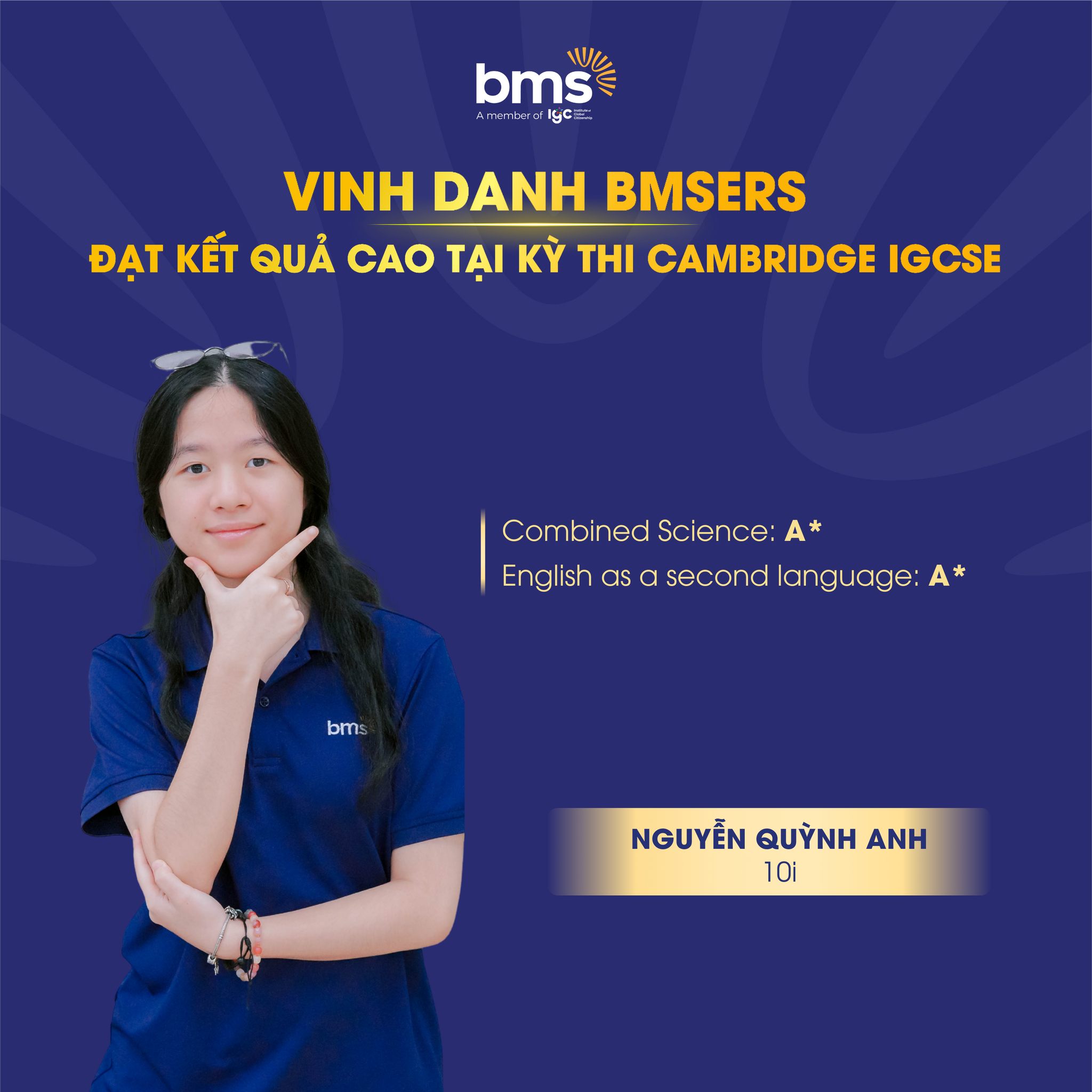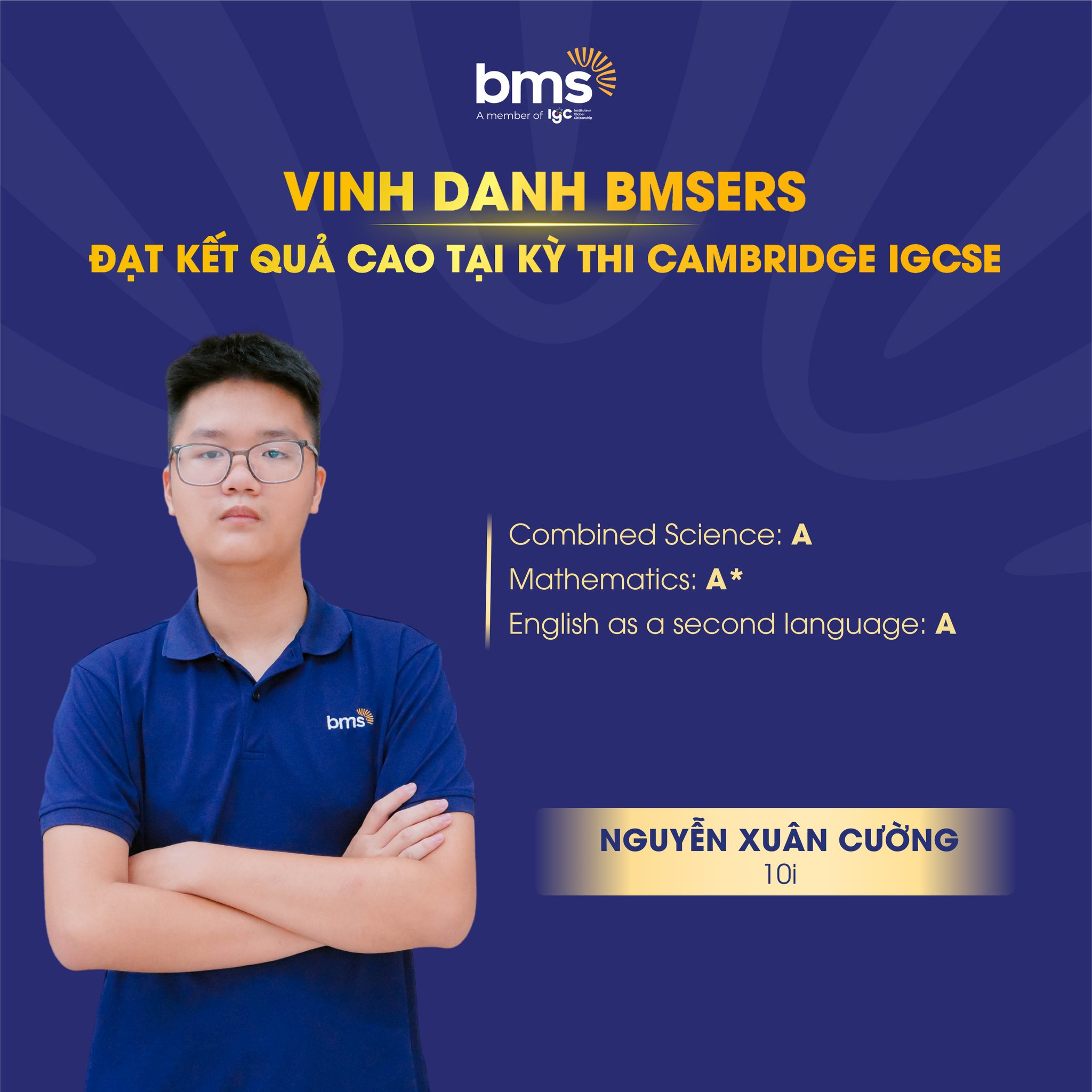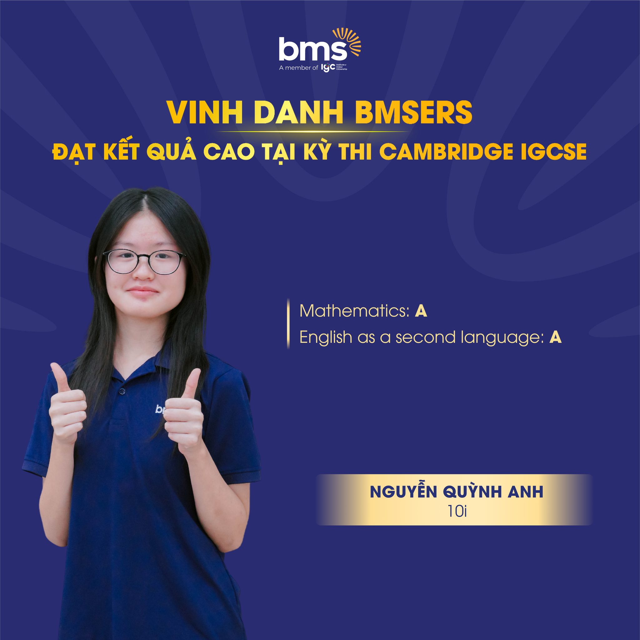 - Đặc biệt, BMSer Trịnh Đan Thu đã xuất sắc đạt trọn bộ điểm A* ở cả 3 môn gồm môn Mathematics, môn Combined Science và môn ESL.