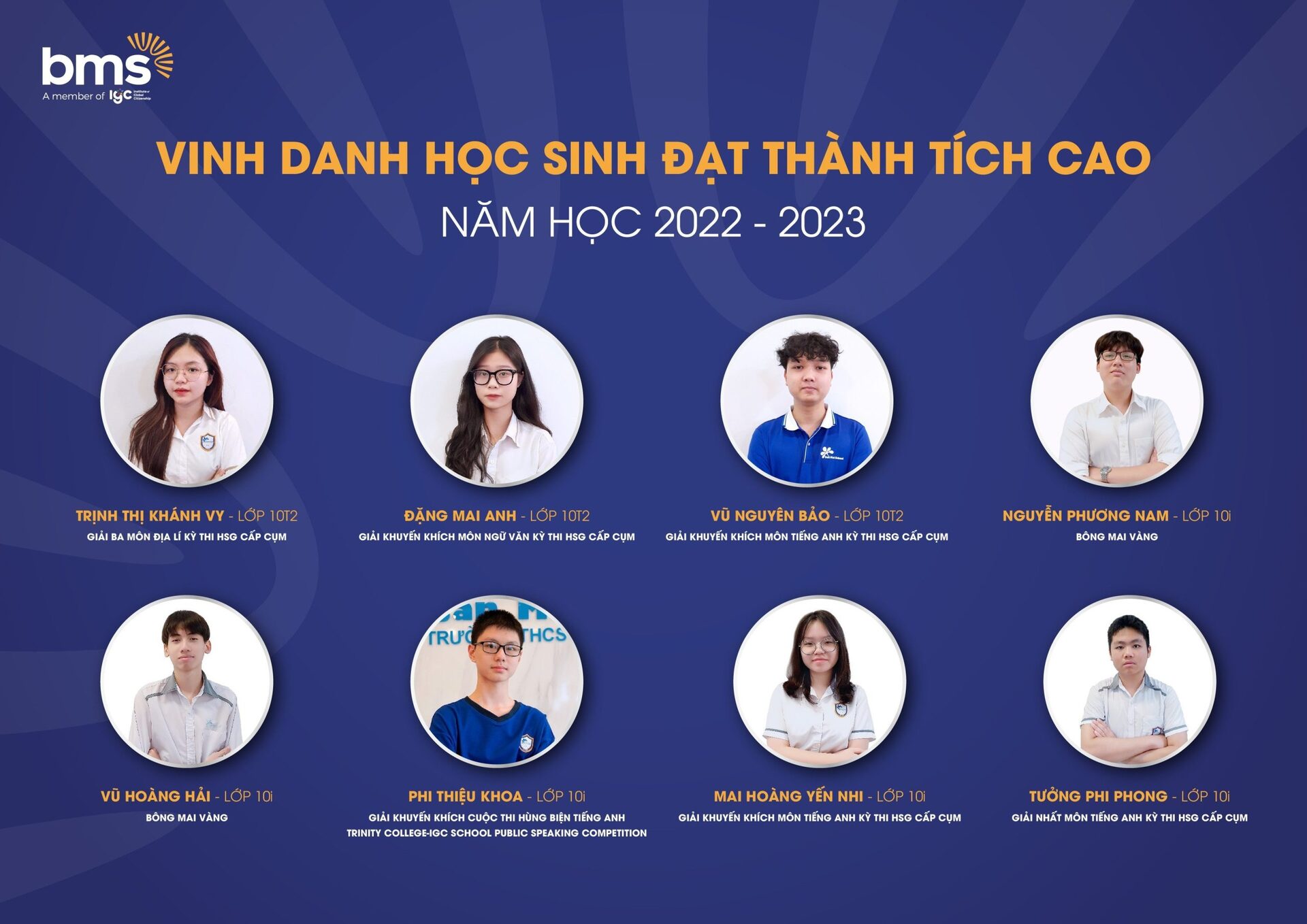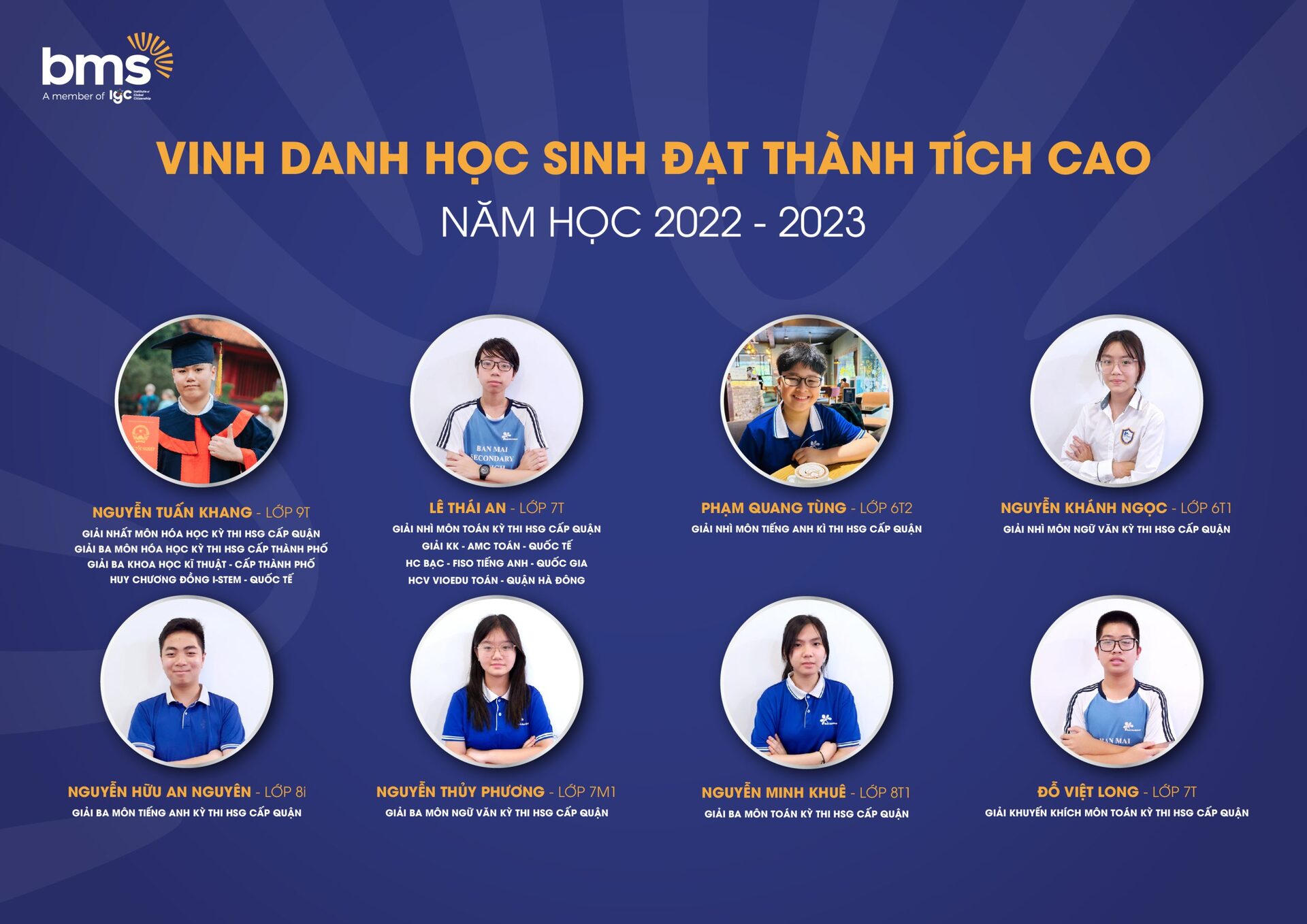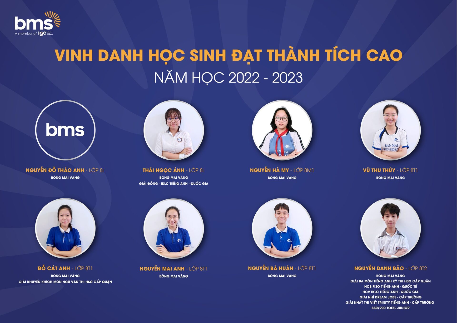 Với chương trình giáo dục vượt trội, môi trường giáo dục an toàn, hiện đại, tôn trọng sự khác biệt, nơi được tự tin thể hiện chính mình, BMSers đã đạt được những thành quả đầy xứng đáng.