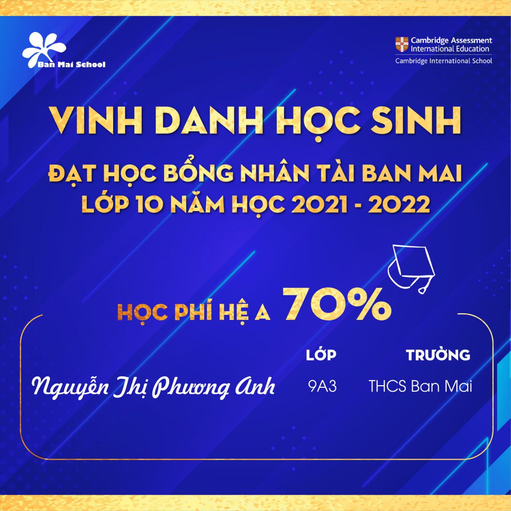Trường THCS – THPT Ban Mai chúc mừng 15 học sinh đã xuất sắc chinh phục kỳ thi HỌC BỔNG NHÂN TÀI BAN MAI năm học 2021 -2022. Đây là một dấu mốc quan trọng ghi nhận năng lực và sự nỗ lực vượt bậc của các con học sinh.