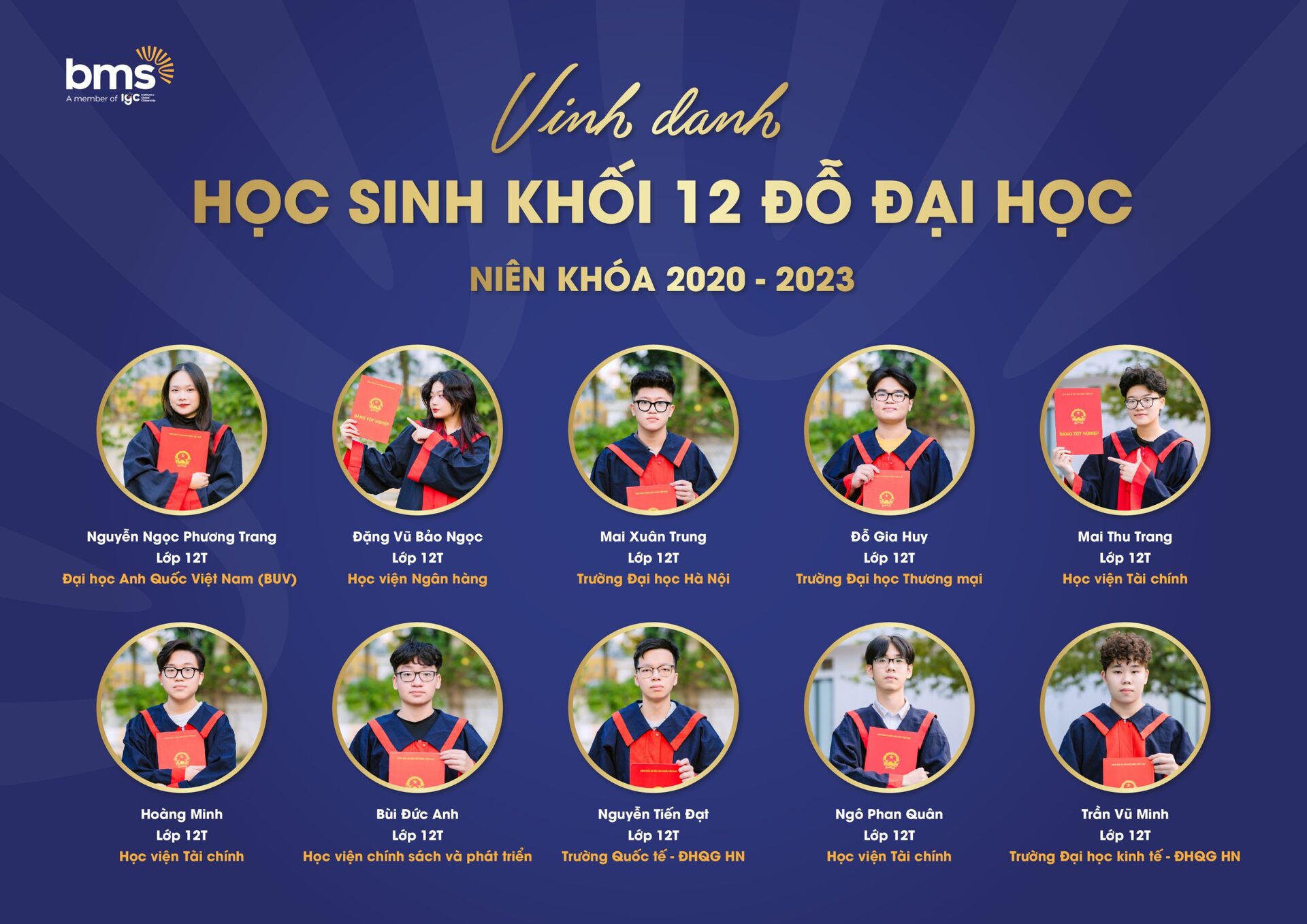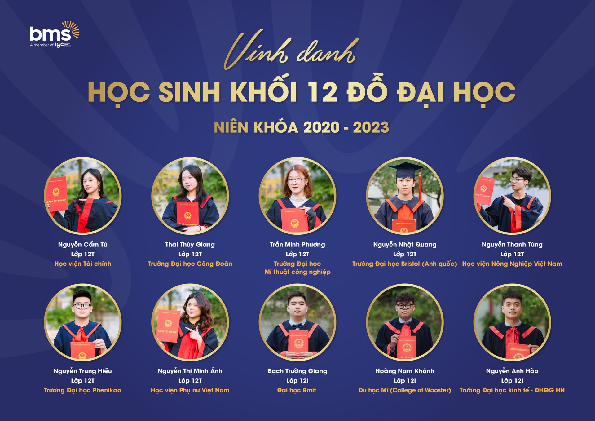 Thành tích ấn tượng mà các BMSers đạt được trong kỳ thi vào Đại học là kết quả của sự nỗ lực không ngừng nghỉ đèn sách, là sự quyết tâm đồng thời là cách thể hiện khả năng, tri thức bản thân cùng với đó là sự đồng hành của Cha Mẹ, Thầy Cô và Nhà trường.