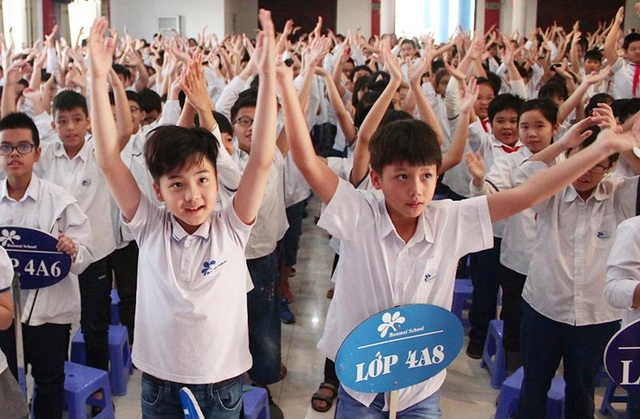 Học sinh mừng thành công sau 4 năm nỗ lực trường Tiểu học Ban Mai đã nhận được kết quả xứng đáng.