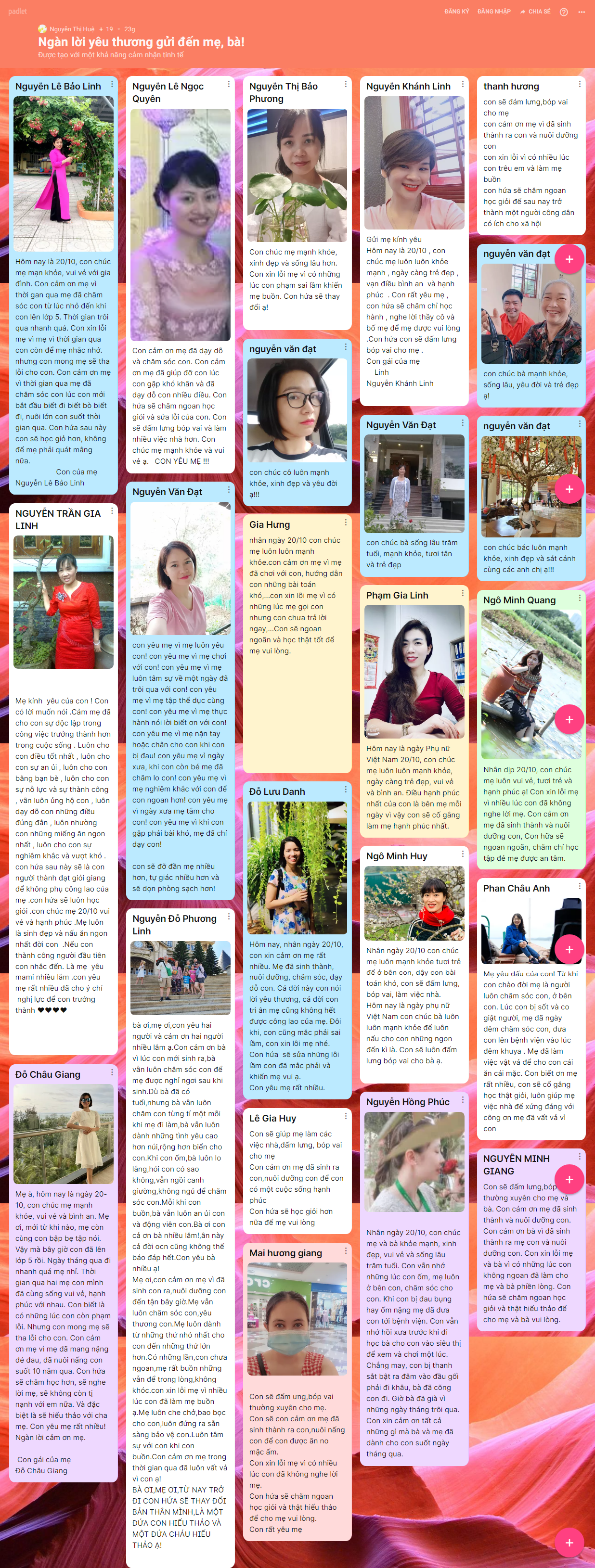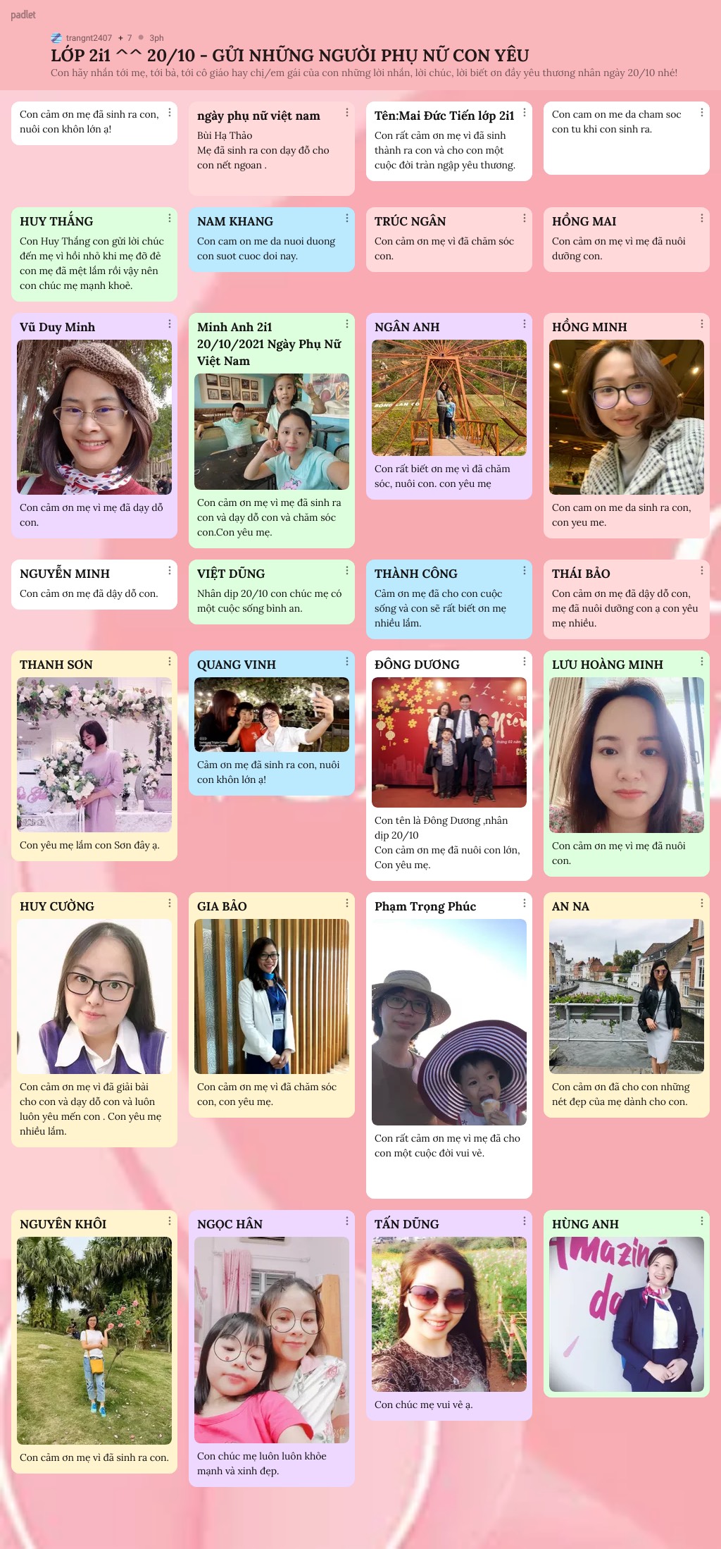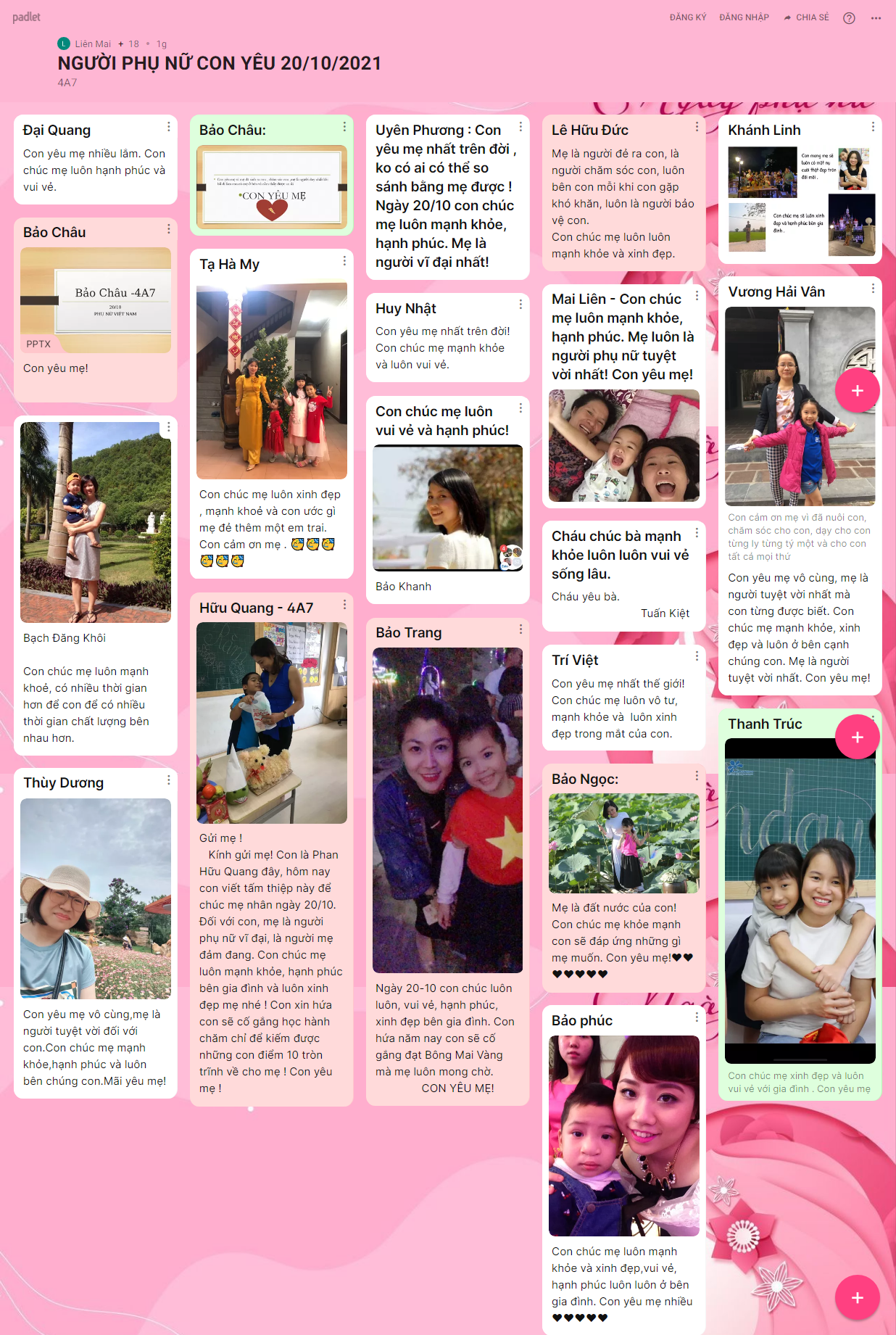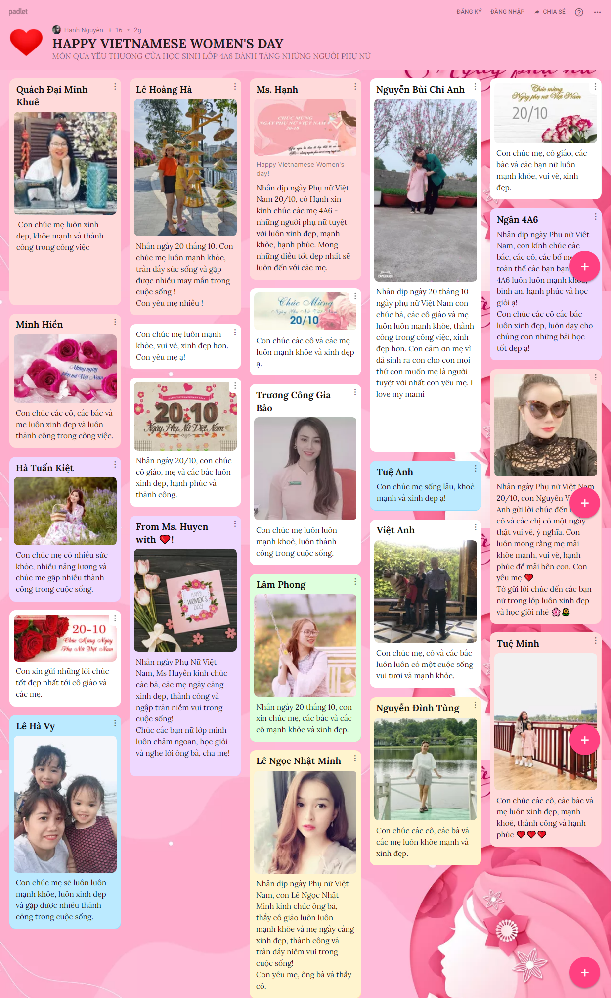 Những hình ảnh, lời chúc yêu thương được hơn 1500 BMSers các khối lớp chia sẻ trên trang palet đã lưu giữ lại nhiều điều ý nghĩa cho chính các con và những người phụ nữ con yêu thương trong ngày 20/10 năm nay.