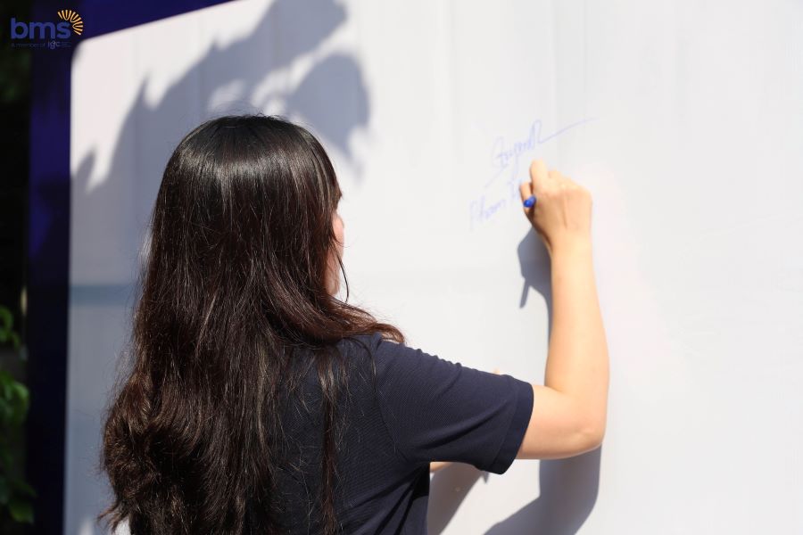 Hoạt động này không chỉ mang lại niềm vui và sự hứng khởi cho các em học sinh mà còn tạo ra mối liên kết mạnh mẽ giữa nhà trường và gia đình. Thông qua những dòng chữ trên backdrop, BMS mong muốn gửi gắm thông điệp rằng: mỗi người đều có vai trò quan trọng và cần chung tay trong việc bảo vệ trái đất.
