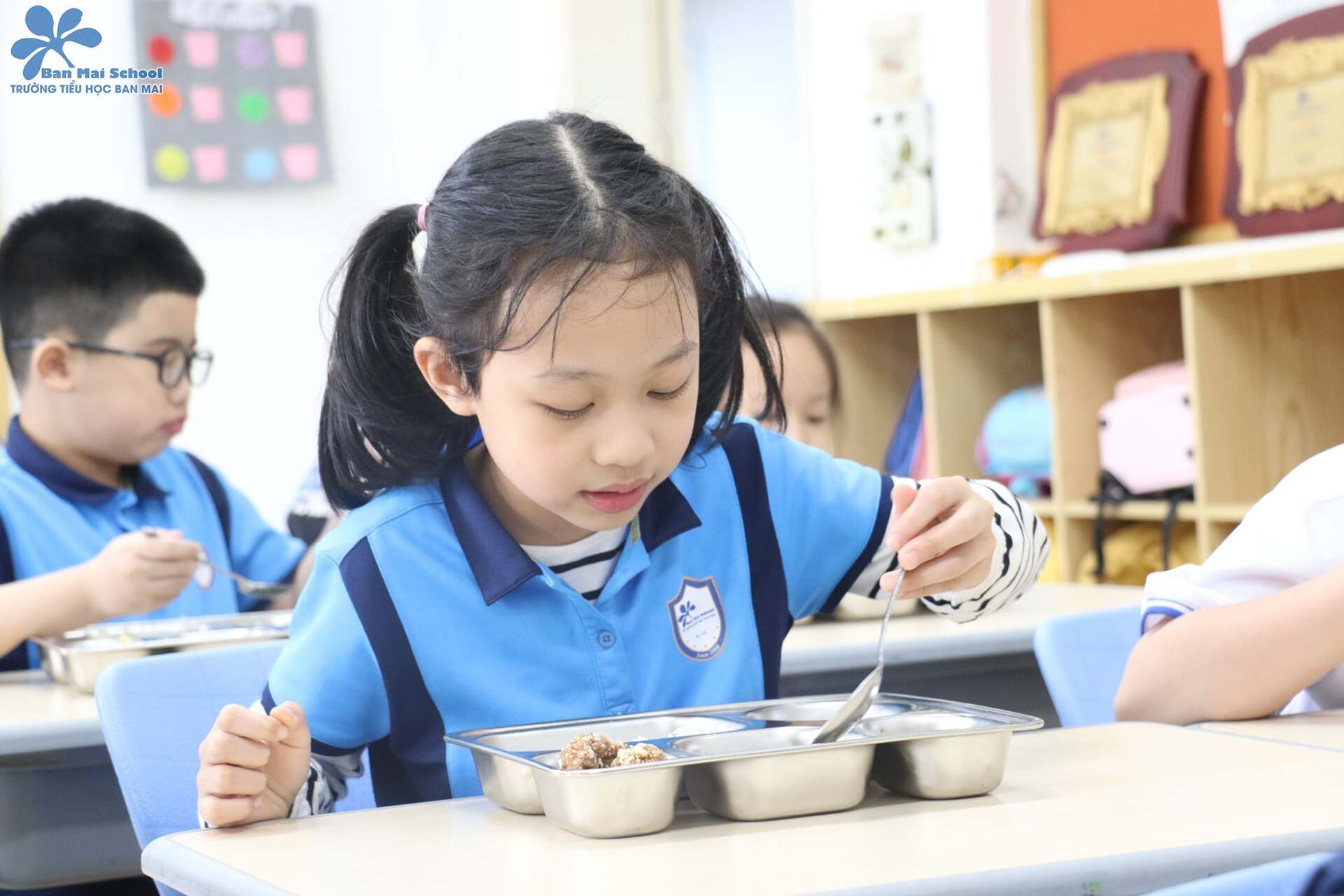 Bữa cơm trưa nóng hổi hôm nay sẽ ngon hơn, vì chúng con được ăn cùng các bạn trong lớp.