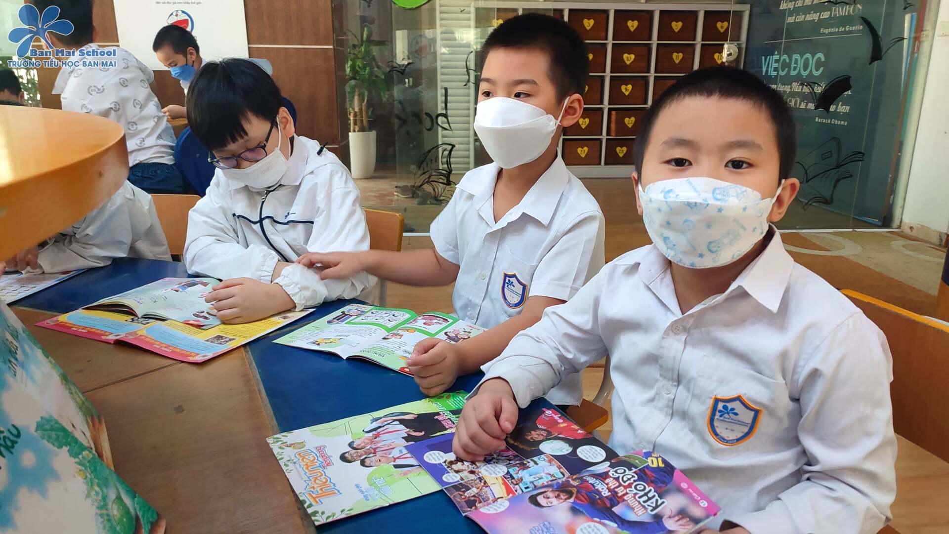 Trong thời gian nghỉ dịch ở nhà, con thấy rất là chán nản. Con rất muốn đến trường để gặp các bạn. Và con mong con sẽ được tìm hiểu về những cuốn sách này nhiều hơn.” – Bạn ngồi giữa đã chia sẻ điều này khi được phỏng vấn bố mẹ ạ.