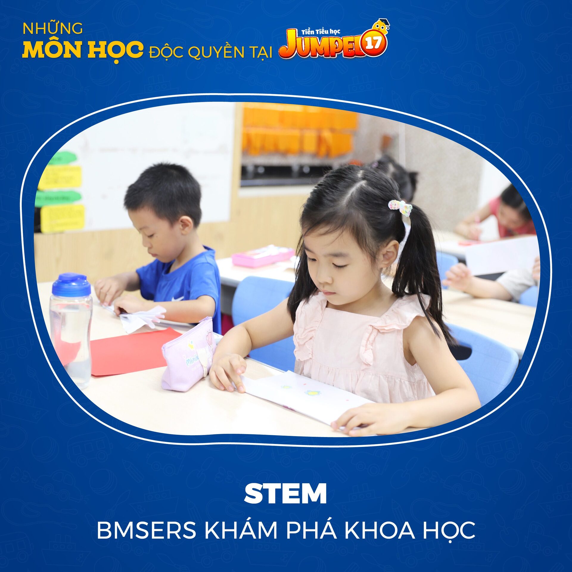 Thế giới khoa học bước đầu mở ra, kích thích sự tò mò, nhu cầu khám phá của trẻ sau mỗi giờ học STEM tại Jumpee 17. Bên cạnh việc tự thực hành và chế tạo các sản phẩm theo quy trình EDP 3 bước, một loạt các kiến thức khoa học thú vị khác sẽ được thầy cô mang đến cho BMSers một cách dễ tiếp thu như: Hiểu về bóng và mặt trời, nổi và chìm, vòng đời của lá, lực đẩy và kéo, gió, mô phỏng sinh học…