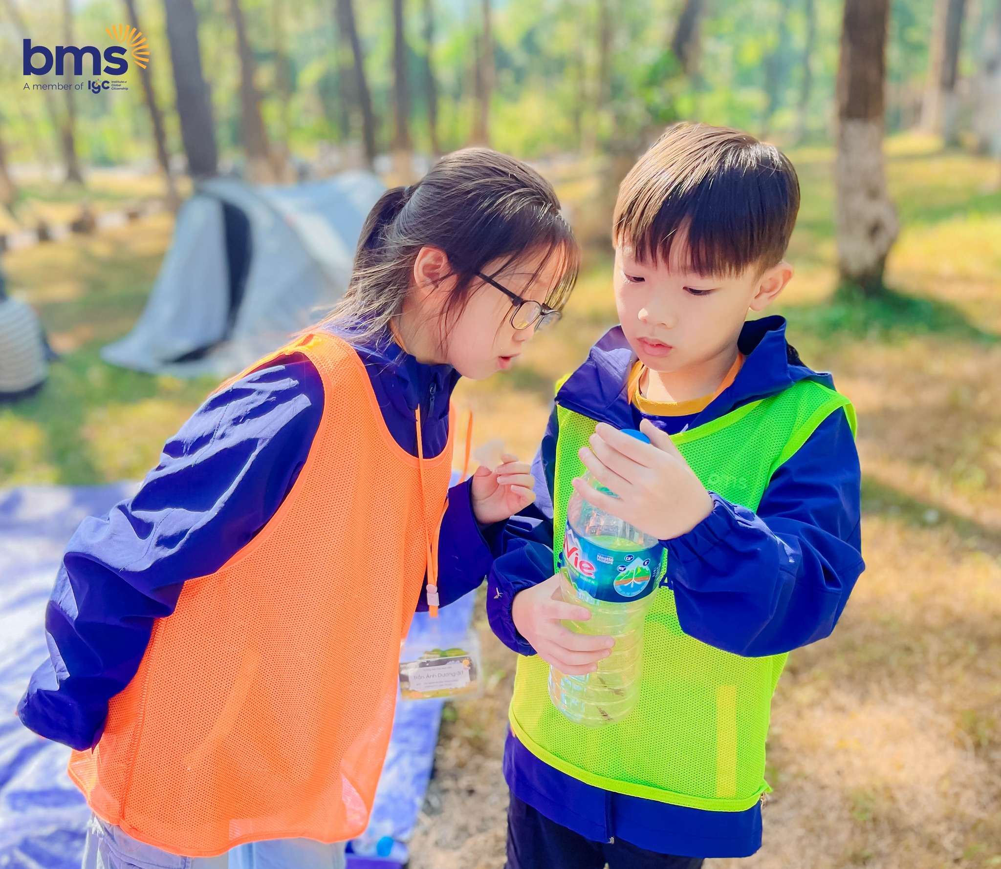 Giữa sắc xanh bạt ngàn của núi rừng, BMSers khối 3 đã hòa mình vào thiên nhiên, quan sát từng chiếc lá, từng dòng suối và tìm thấy trong mỗi điều nhỏ bé một câu chuyện thú vị. Những “kho báu thiên nhiên” như chiếc lá lạ, viên đá nhỏ hay chú côn trùng bé xíu trở thành bài học sống động giúp các con hiểu hơn về vẻ đẹp và sự đa dạng của môi trường tự nhiên.